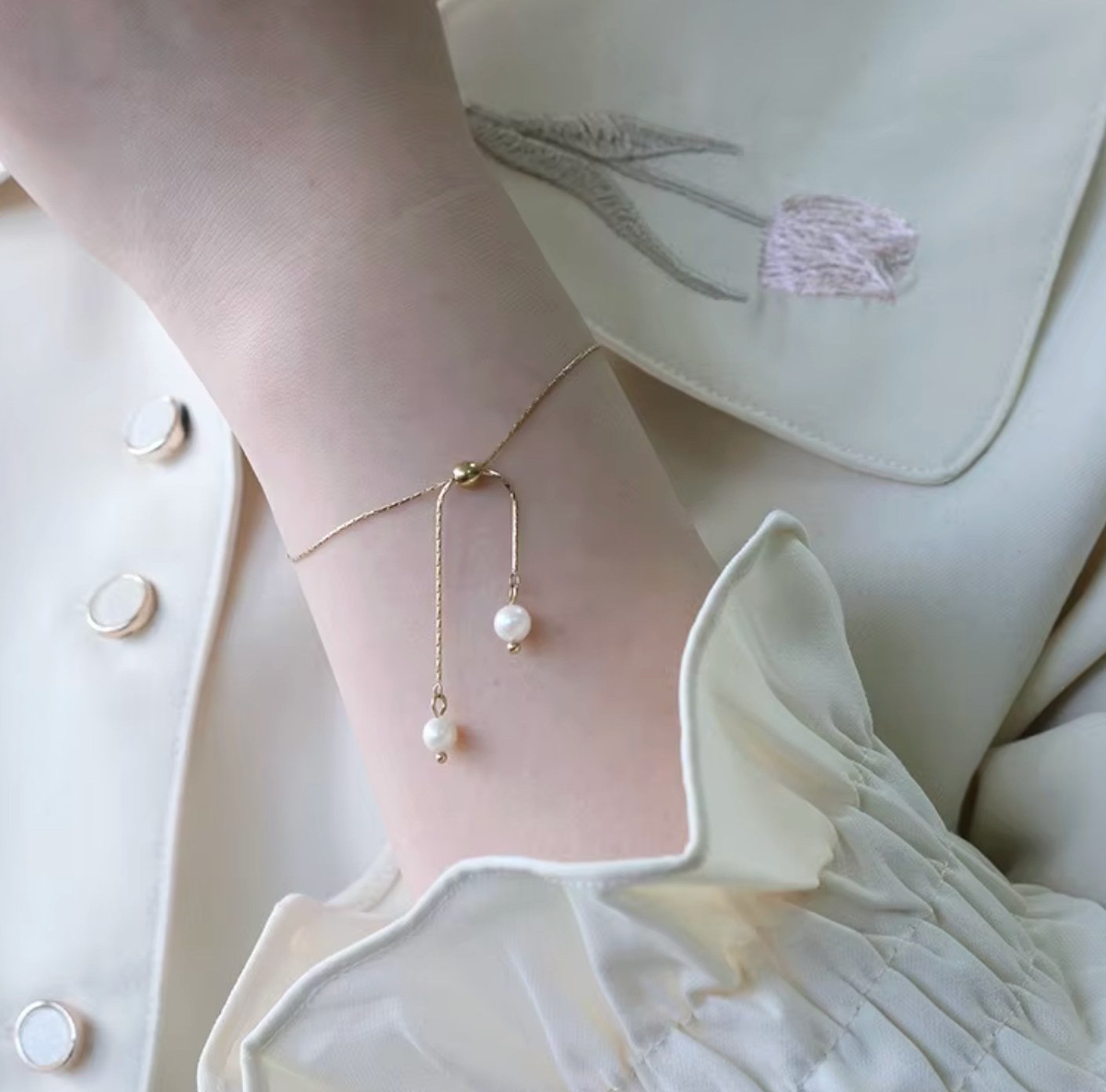 316Lサージカルステンレス ブレスレット チェーン パール【NY01671】