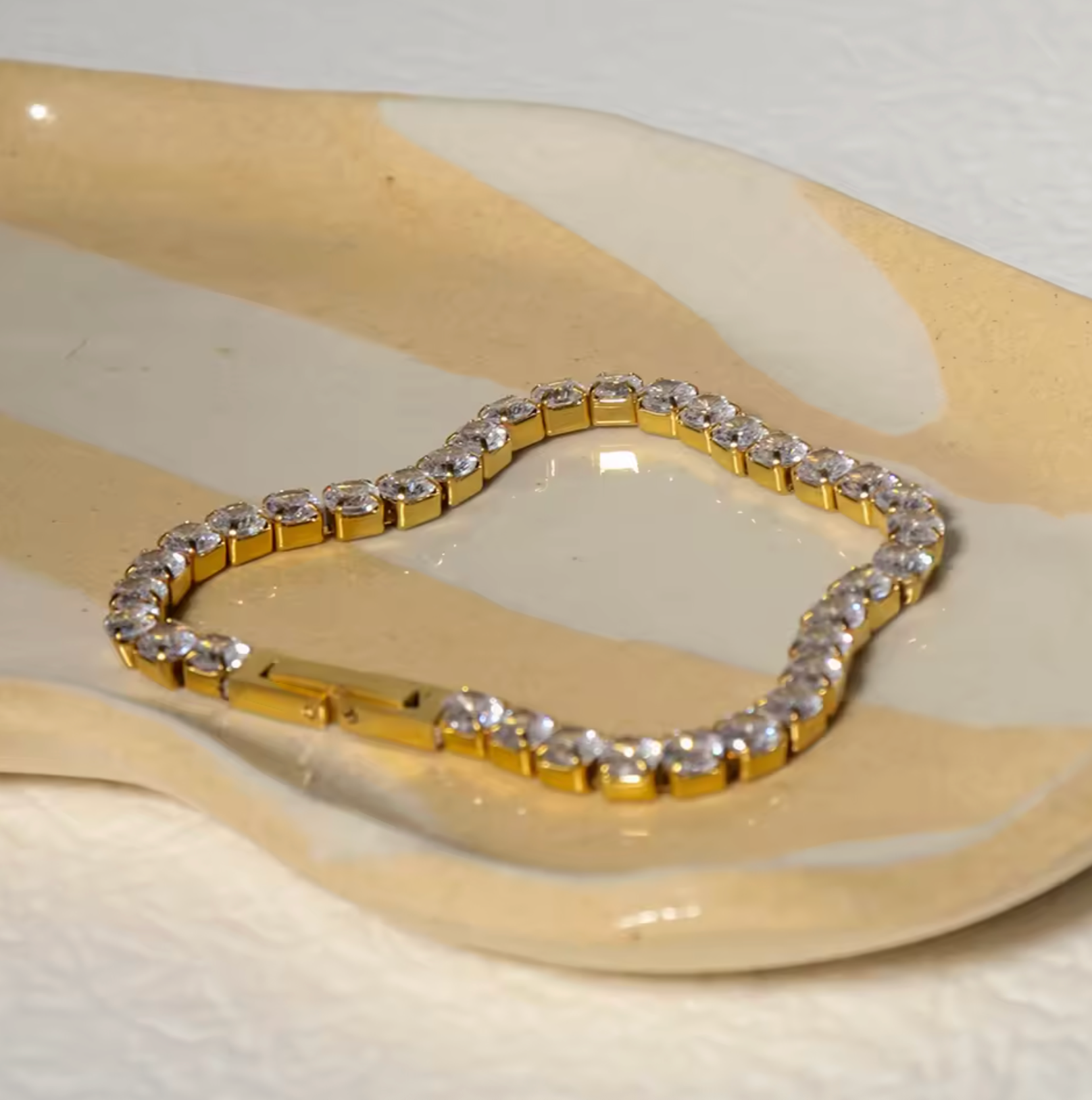 316Lサージカルステンレス 18Kゴールドメッキ ブレスレット ジルコニア【NY01720】