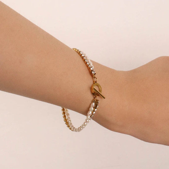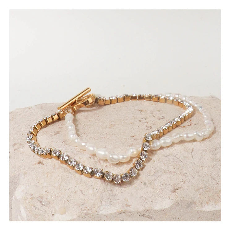 316Lサージカルステンレス ブレスレット チェーン パール【NY01859】