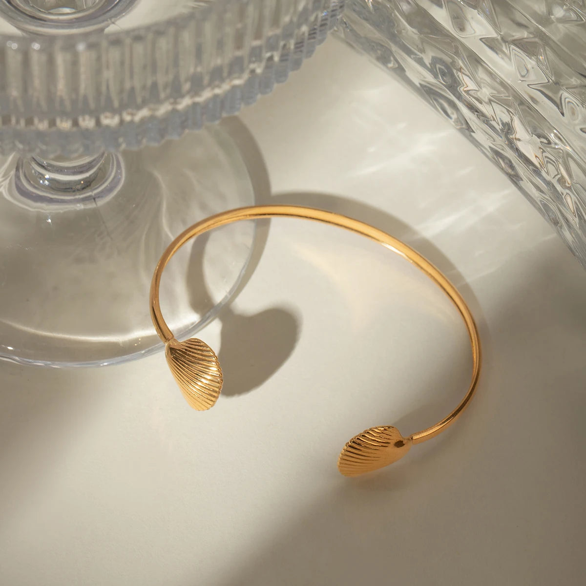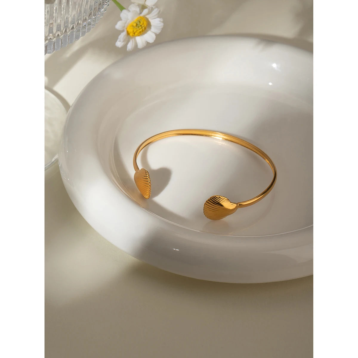 ステンレス304 ニッケルフリー 水に濡れても錆びにくい 18Kゴールドメッキ ブレスレット バングル シェル 貝殻 【YJ00300】