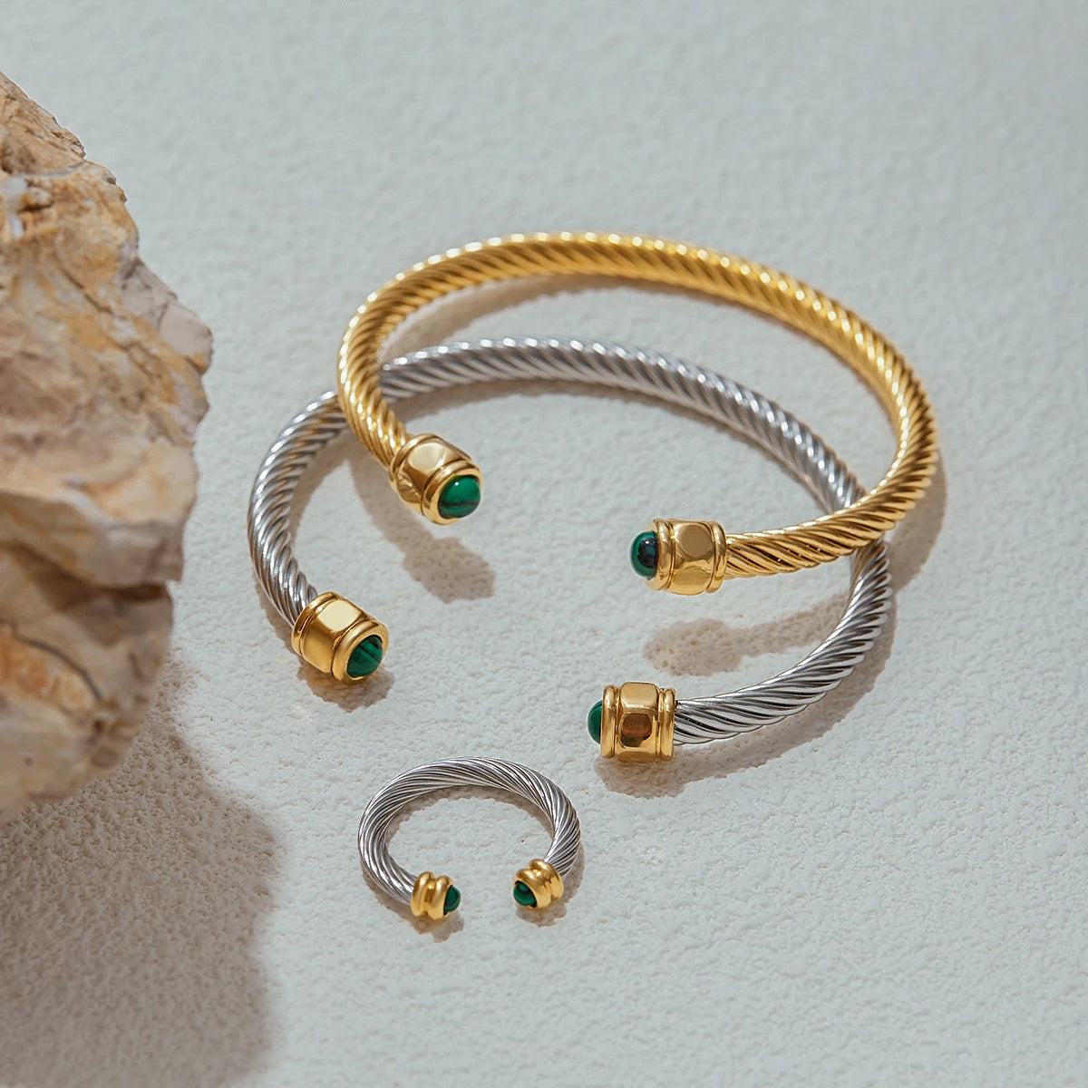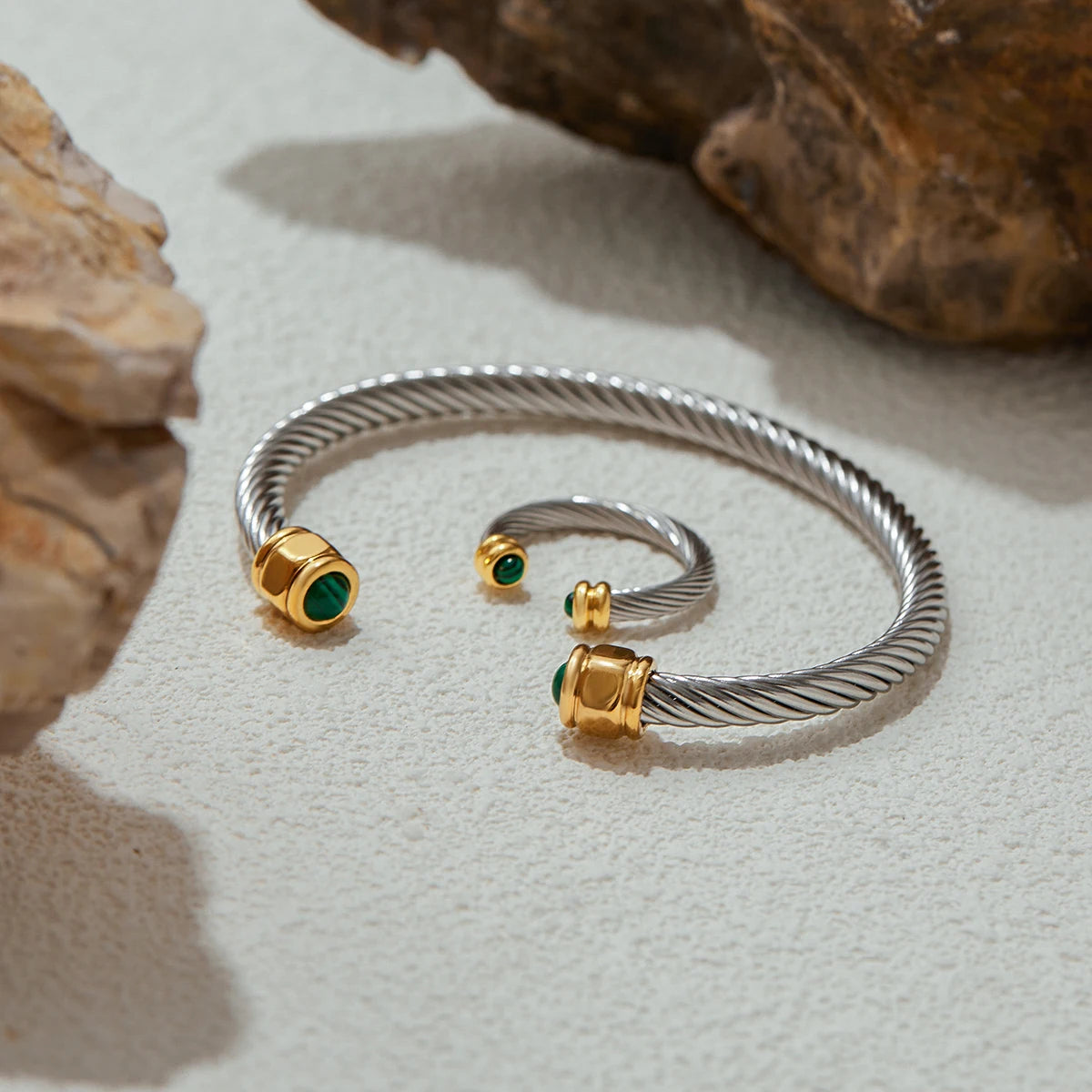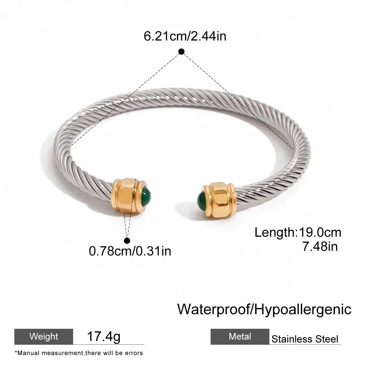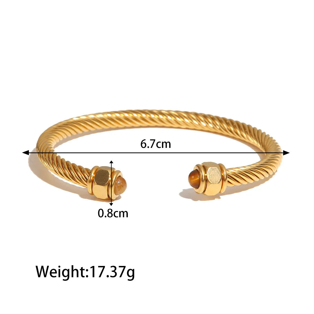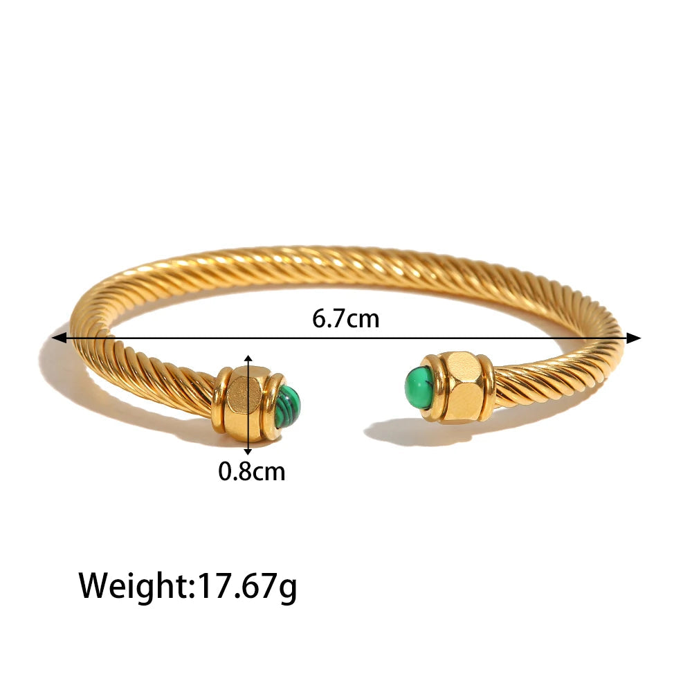 ステンレス304 ニッケルフリー 水に濡れても錆びにくい 18Kゴールドメッキ ブレスレット バングル ターコイズ 【YJ00398】