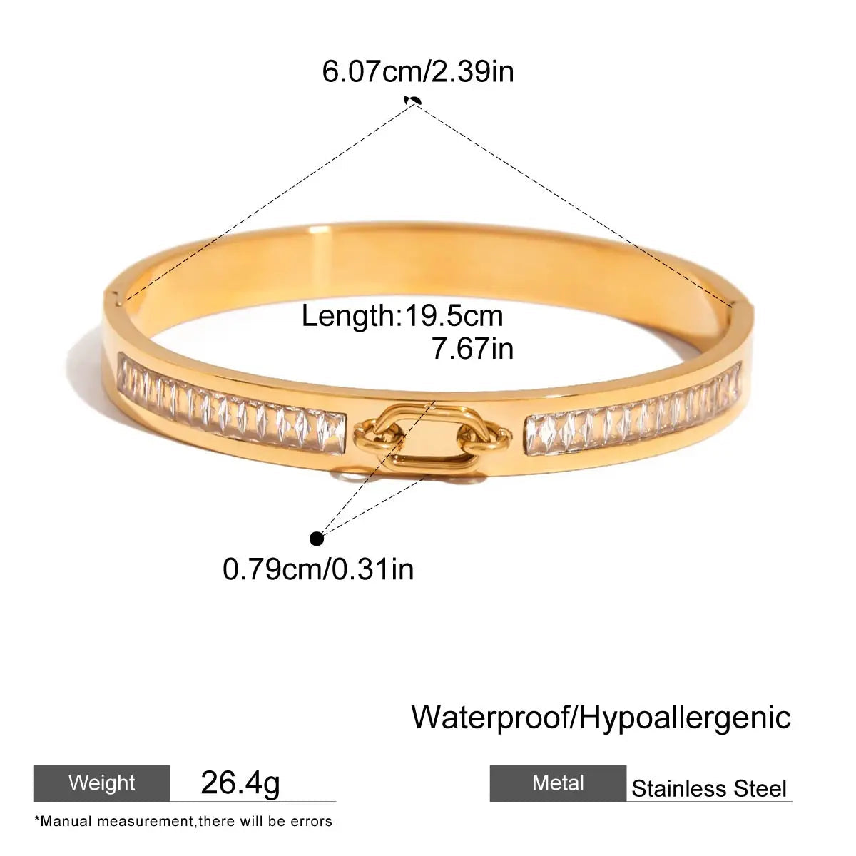 ステンレス304 ニッケルフリー 水に濡れても錆びにくい 18Kゴールドメッキ ブレスレット バングル ジルコニア【YJ00557】