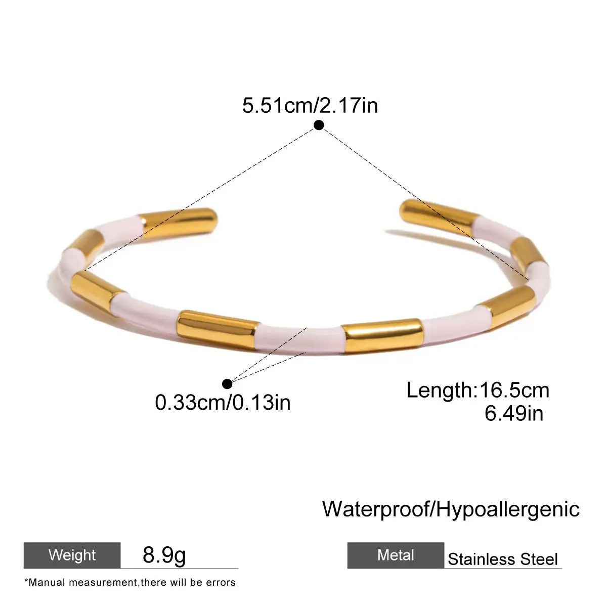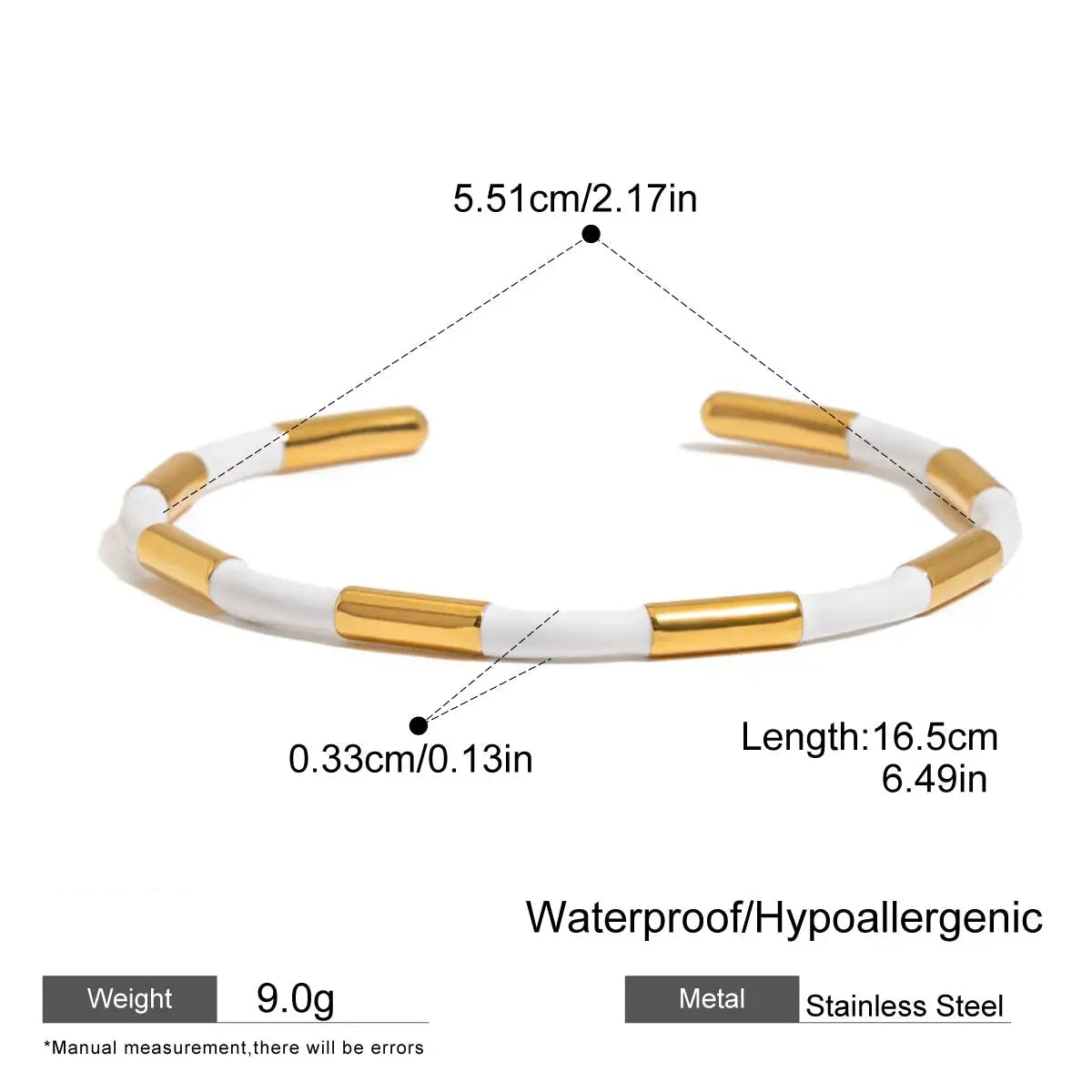 ステンレス304 ニッケルフリー 水に濡れても錆びにくい 18Kゴールドメッキ ブレスレット バングル エナメル【YJ00558】
