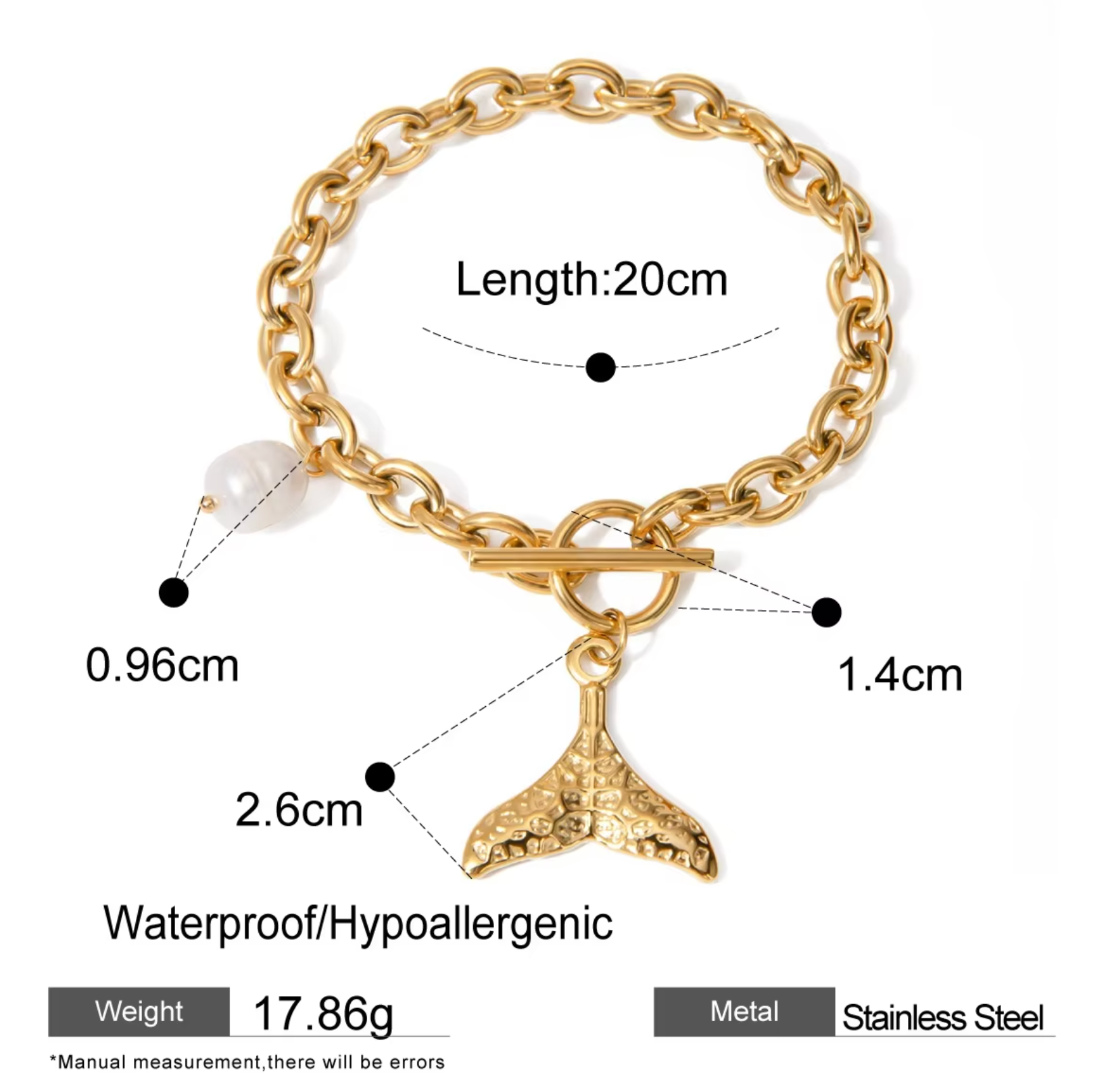 ステンレス304 ニッケルフリー 水に濡れても錆びにくい 18Kゴールドメッキ ブレスレット マーメイド【YJ00571】
