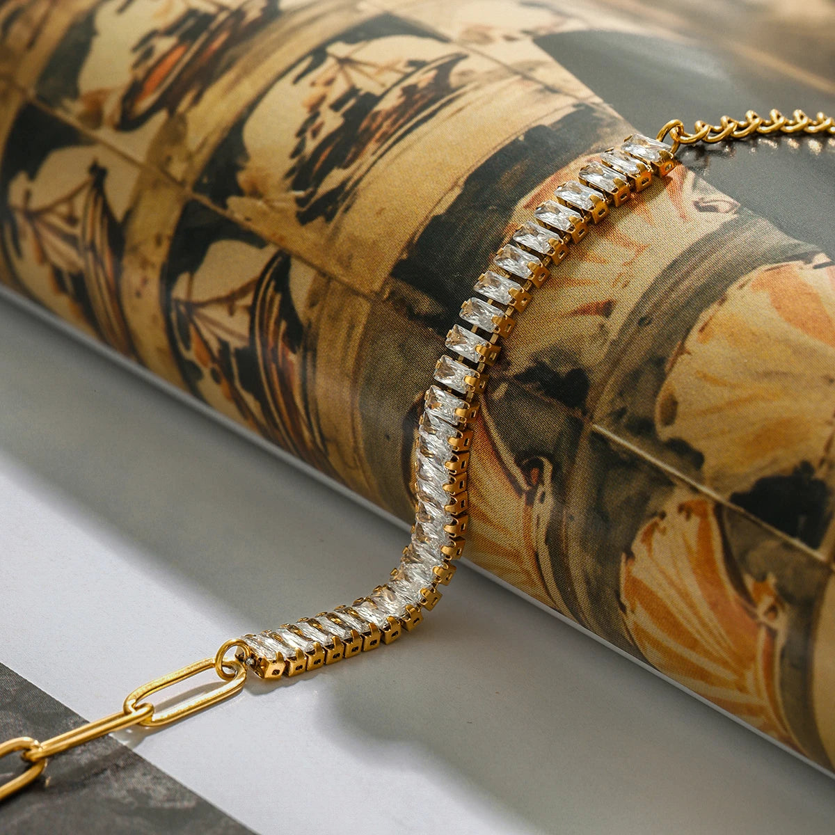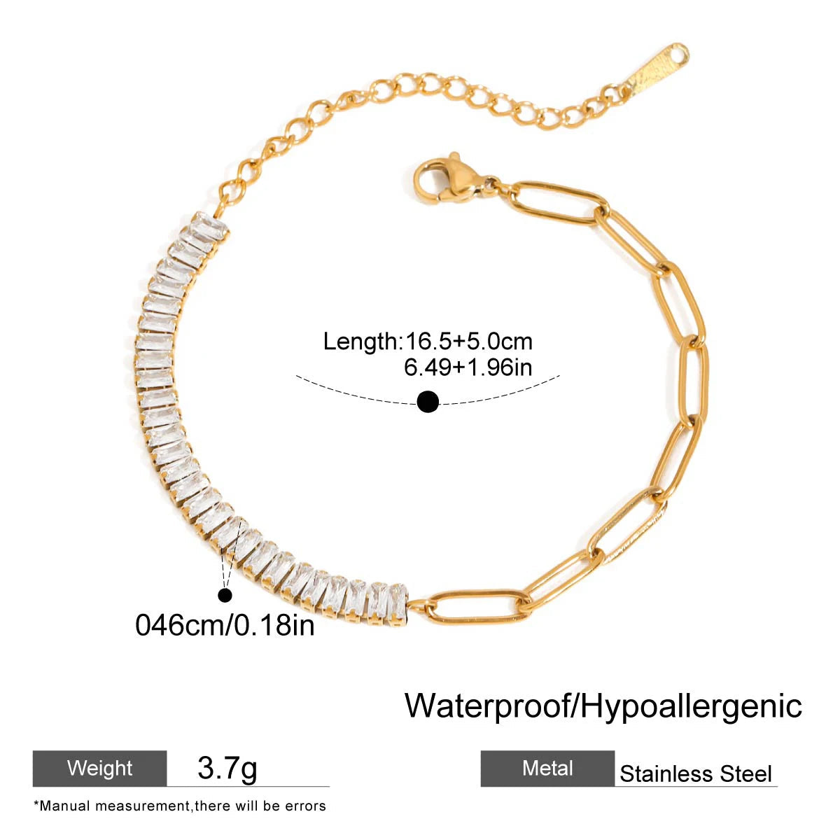 ステンレス304 ニッケルフリー 水に濡れても錆びにくい 18Kゴールドメッキ チェーン ブレスレット ジルコニア 【YJ00676】