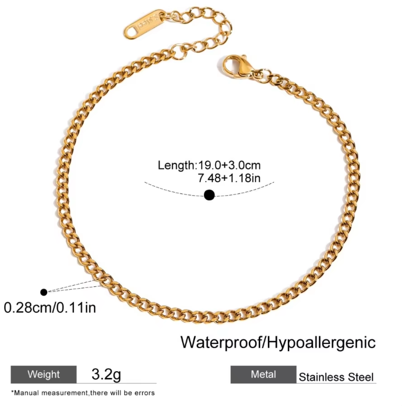 ステンレス304 ニッケルフリー 水に濡れても錆びにくい キューバンチェーン ブレスレット 【YJ00706】