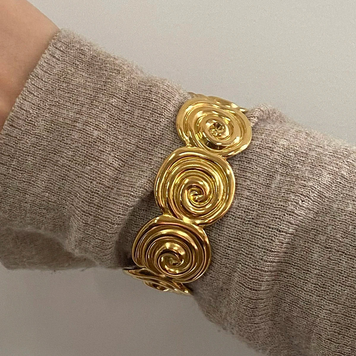 ステンレス304 ニッケルフリー 水に濡れても錆びにくい 18Kゴールドメッキ スパイラル ブレスレット バングル【YJ00730】