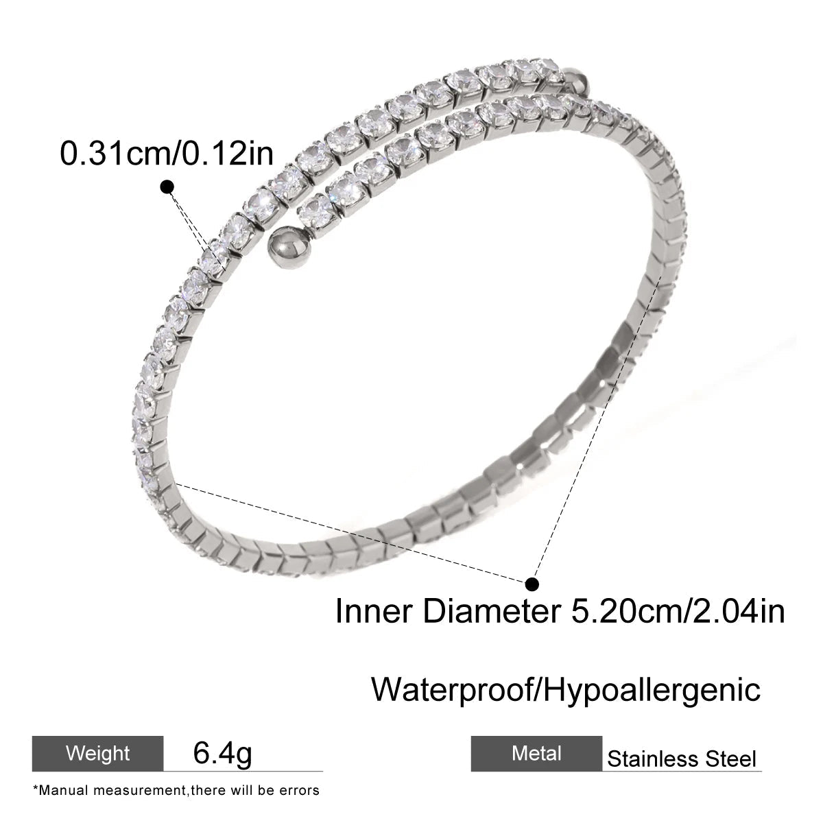 ステンレス304 ニッケルフリー 水に濡れても錆びにくい 18Kゴールドメッキ ブレスレット バングル ジルコニア【YJ00731】
