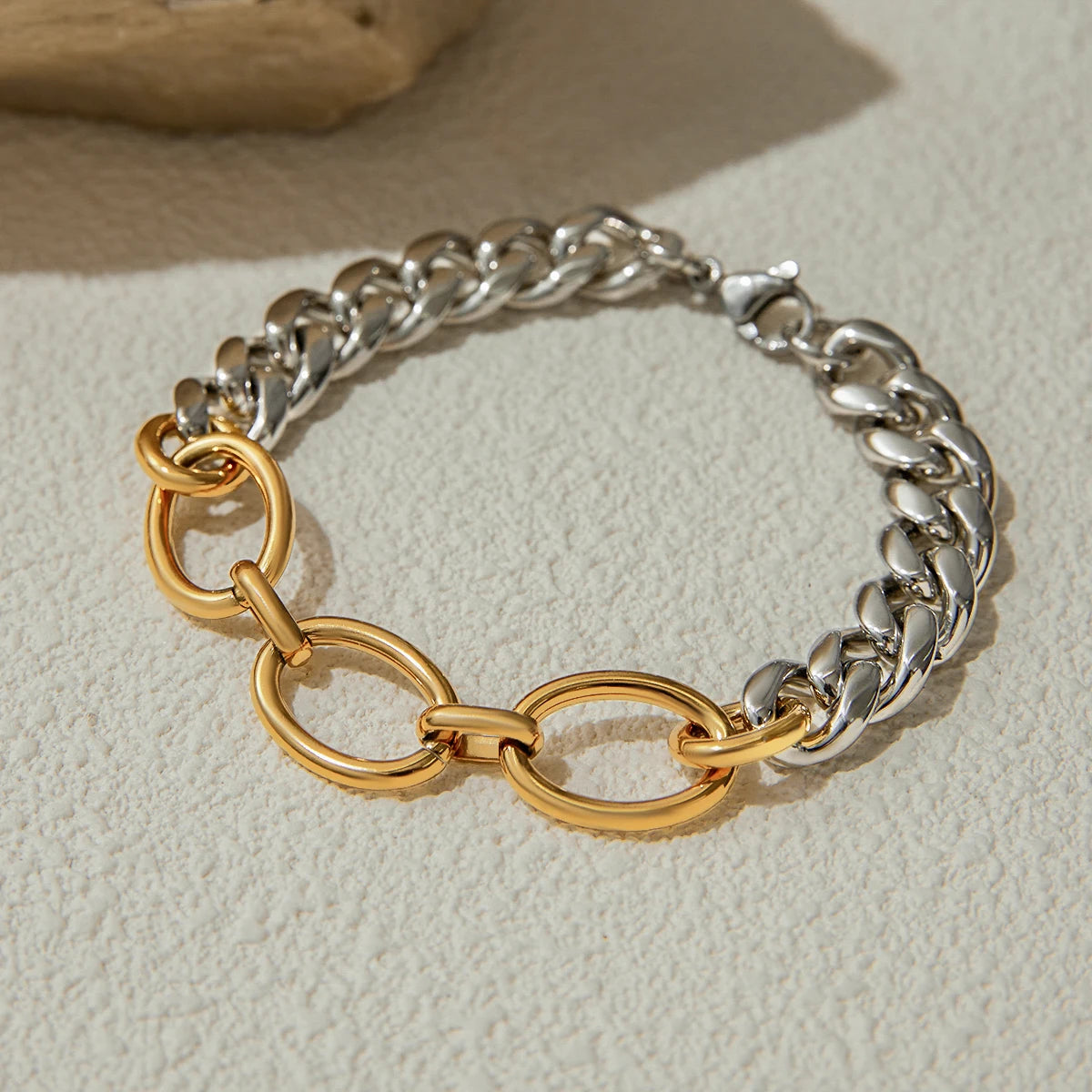 ステンレス304 ニッケルフリー 水に濡れても錆びにくい 18Kゴールドメッキ チェーン ブレスレット【YJ00832】