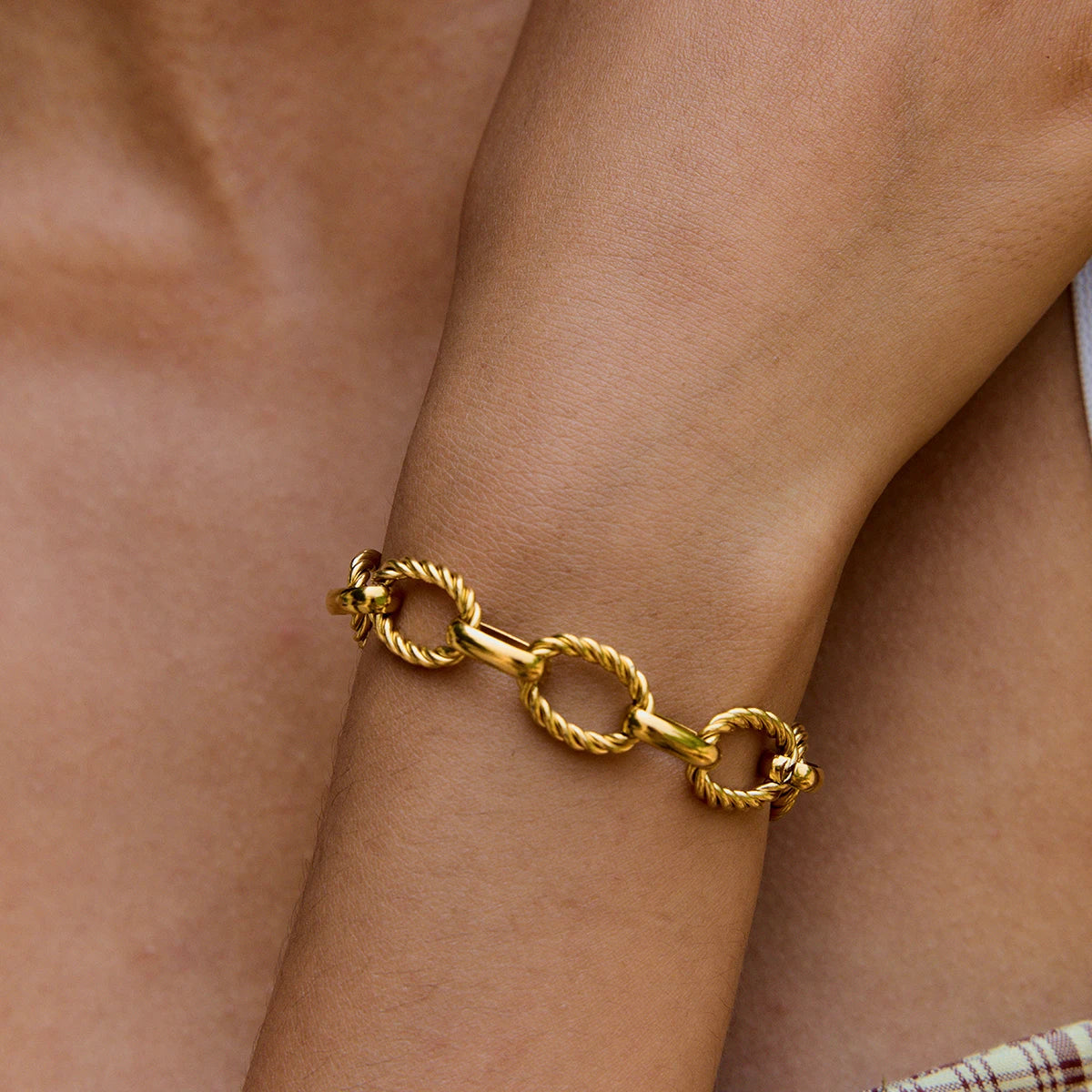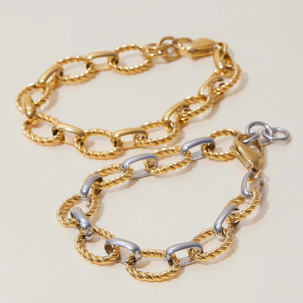 ステンレス304 低ニッケル 水に濡れても錆びにくい 18Kゴールドメッキ ブレスレット チェーン 【YJ01010】