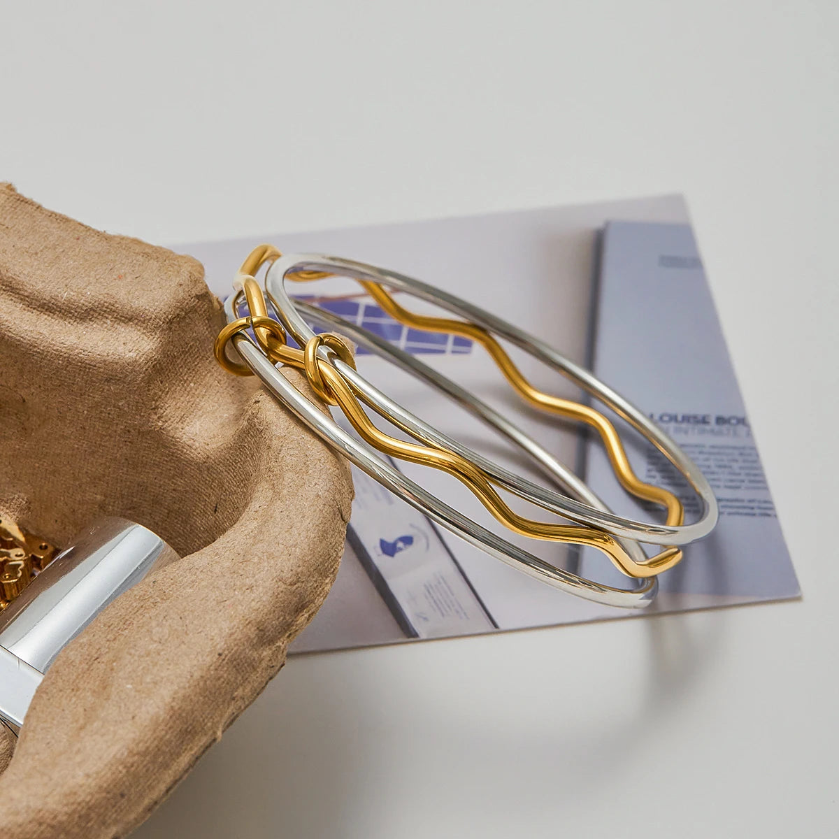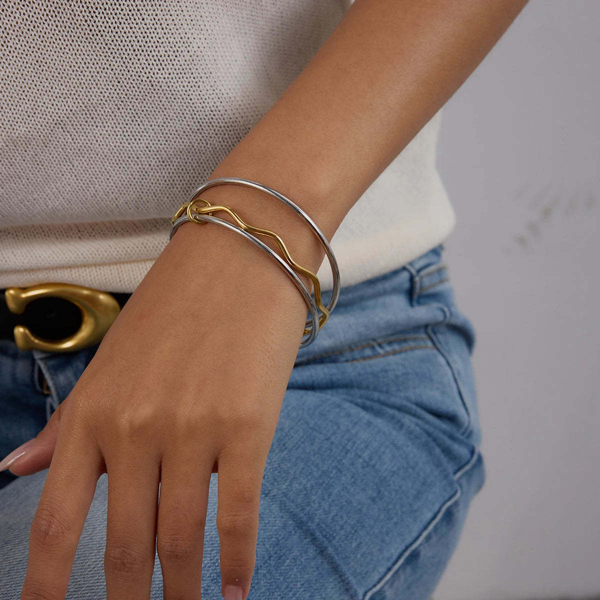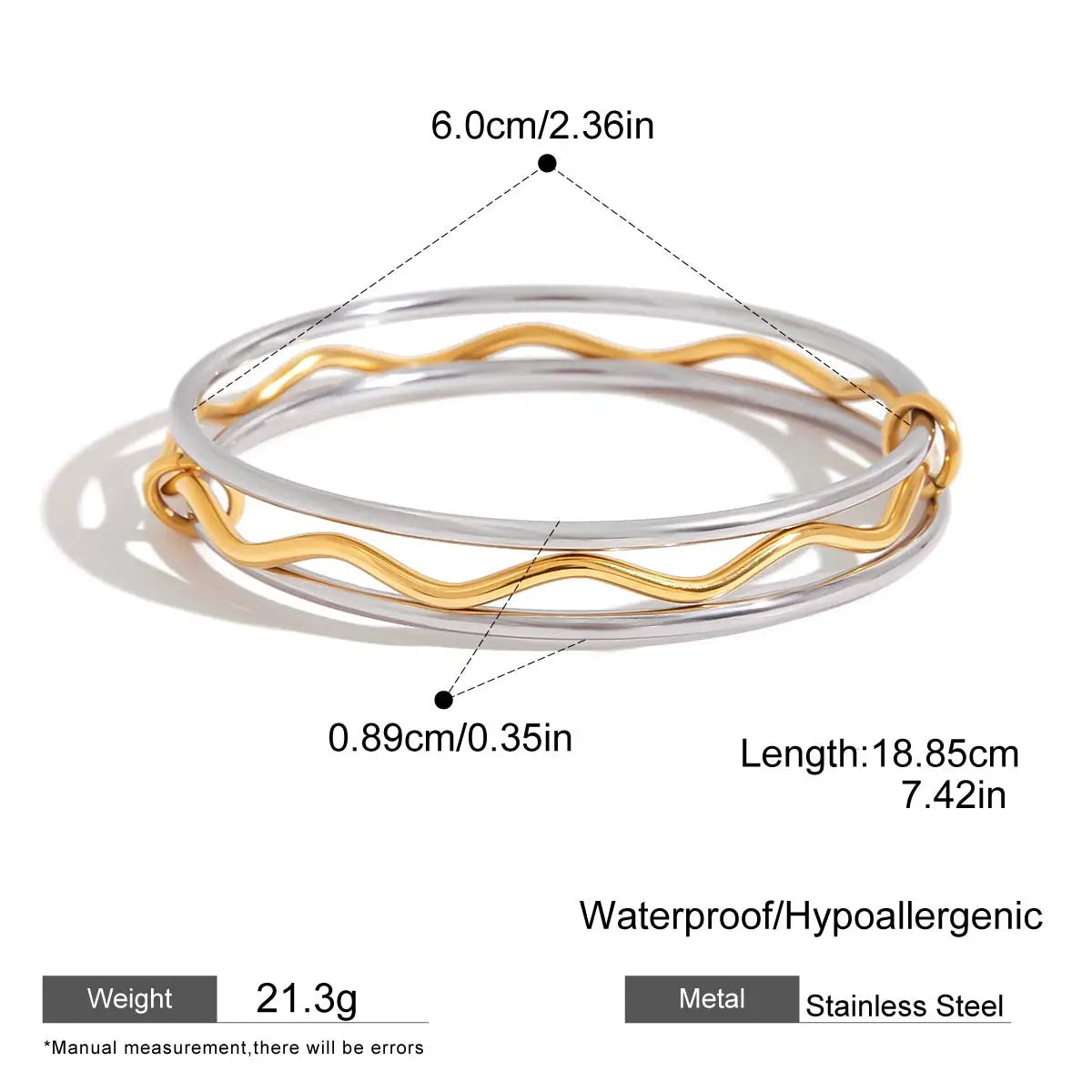 ステンレス304 低ニッケル 水に濡れても錆びにくい 18Kゴールドメッキ ブレスレット 3連【YJ01023】