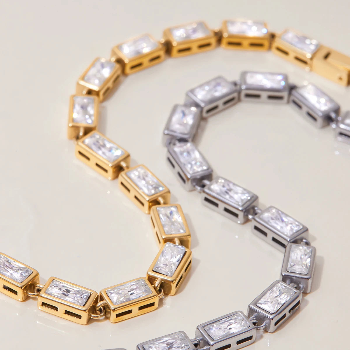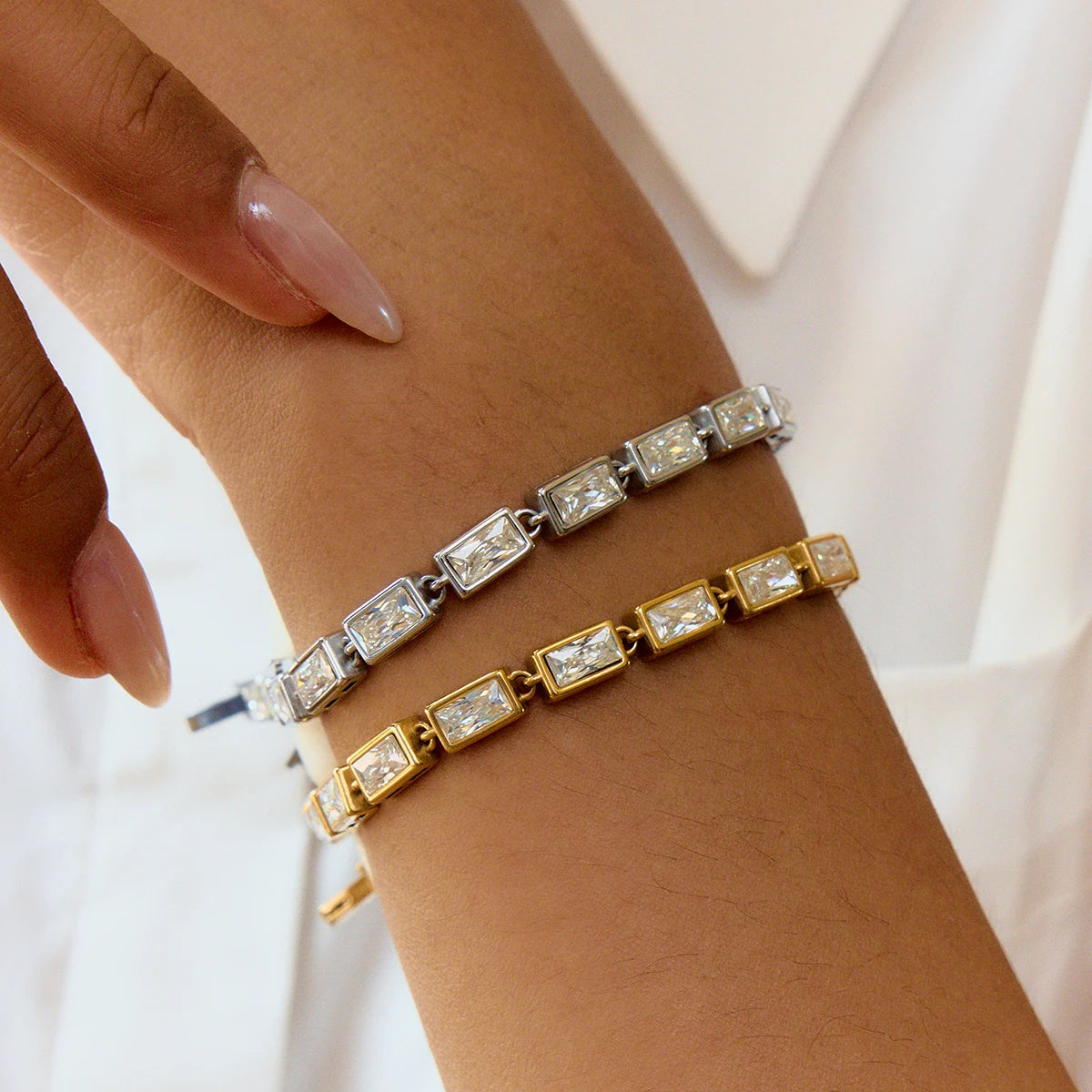ステンレス304 低ニッケル 水に濡れても錆びにくい 18Kゴールドメッキ ブレスレット ジルコニア 【YJ01057】