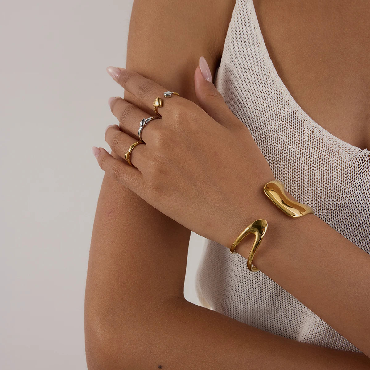 ステンレス304 低ニッケル 水に濡れても錆びにくい 18Kゴールドメッキ ブレスレット 2層 【YJ01122】