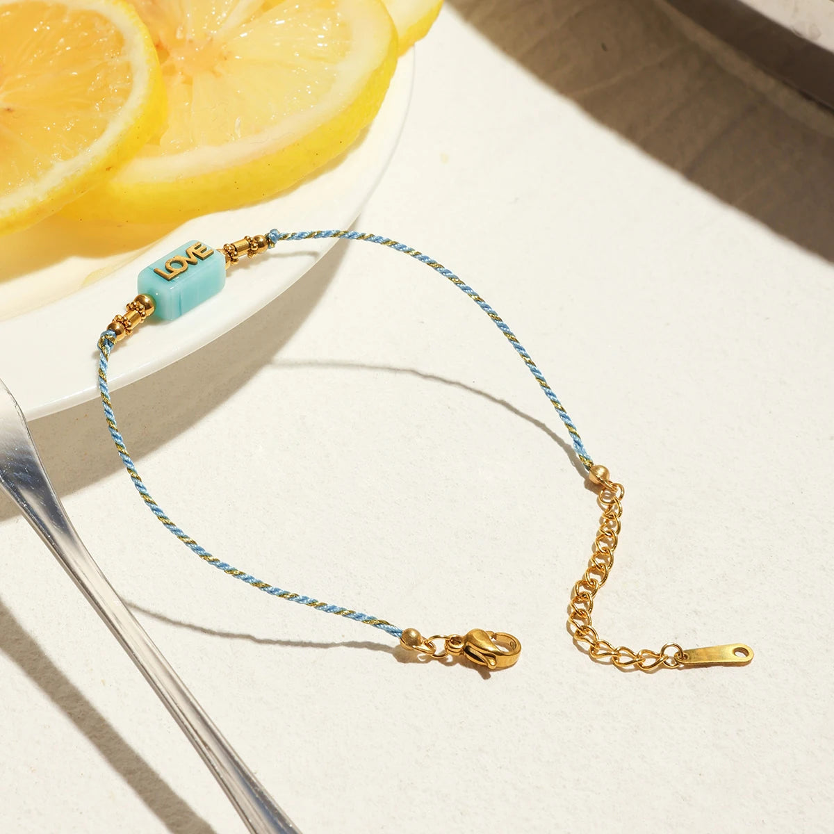 ステンレス304 低ニッケル 水に濡れても錆びにくい 18Kゴールドメッキ ブレスレット LOVE【YJ01174】