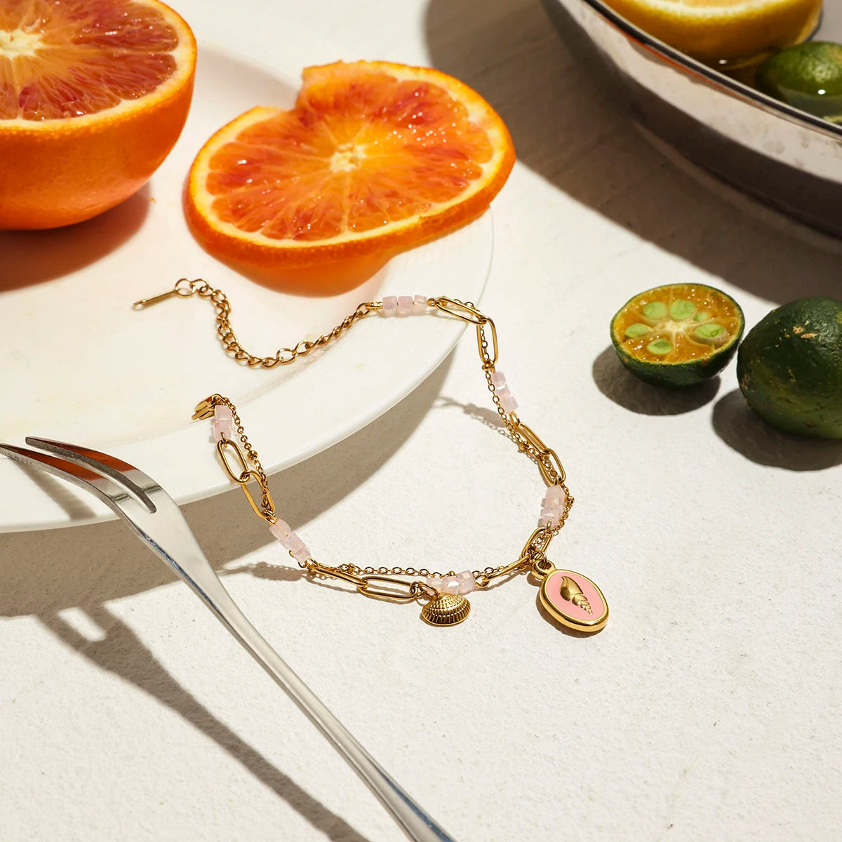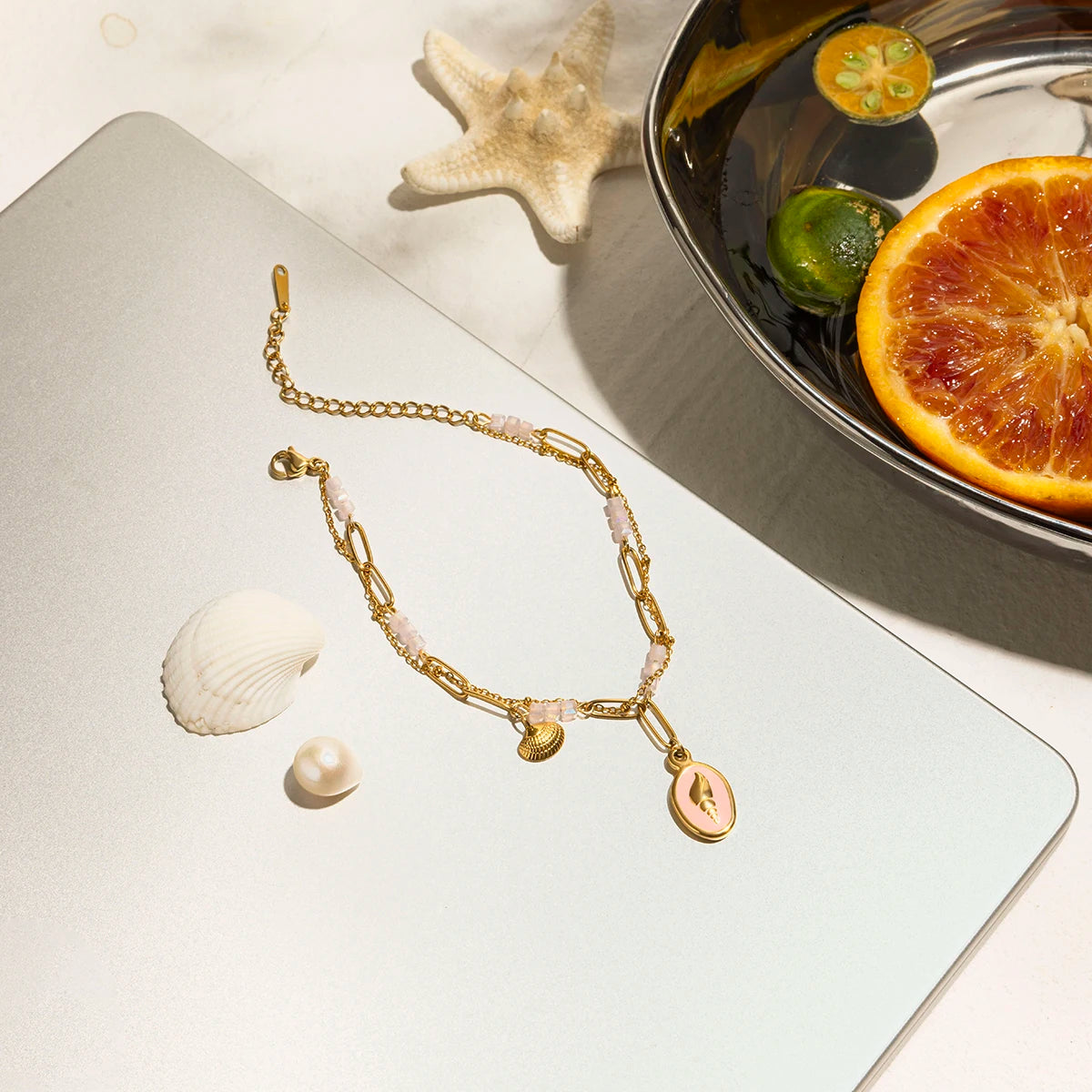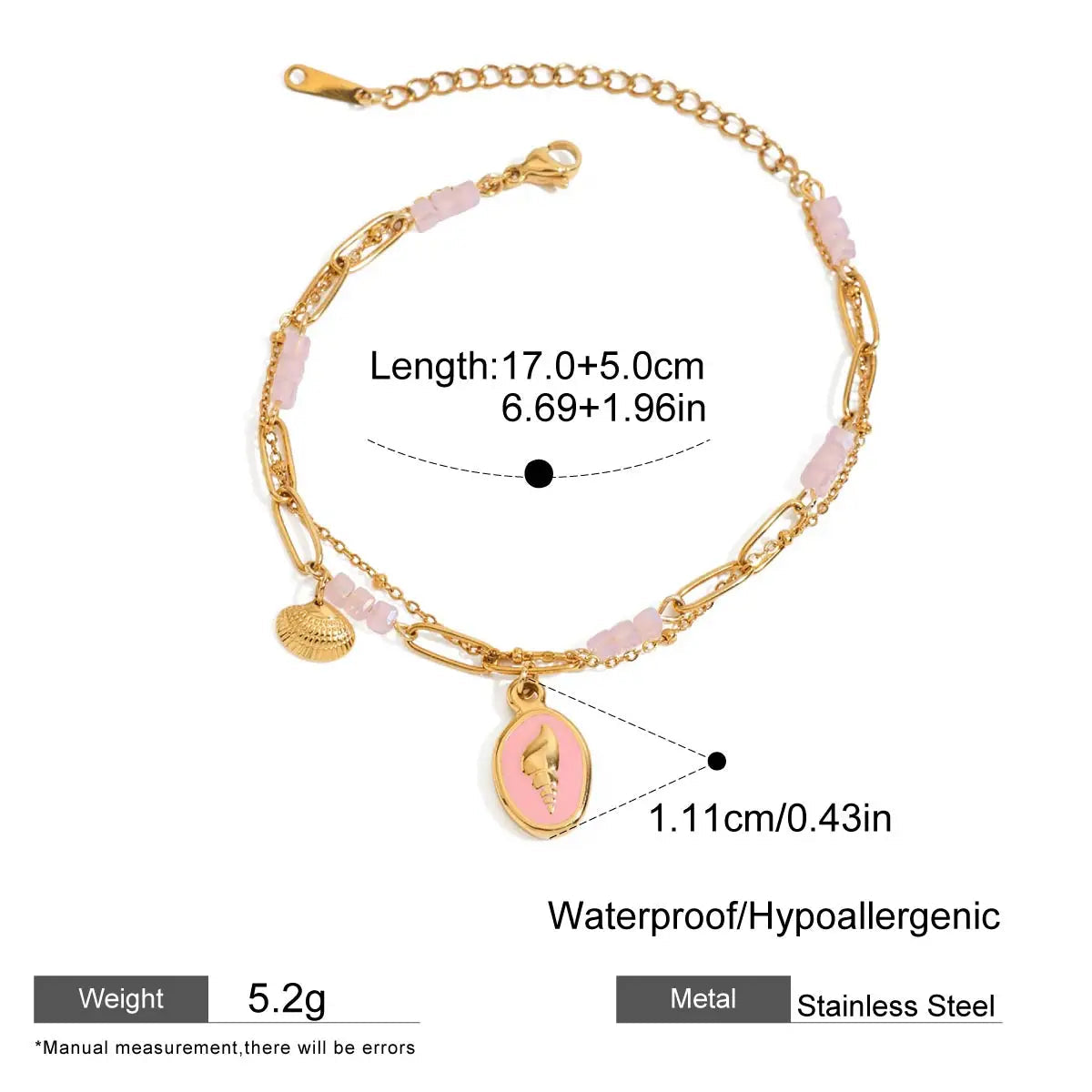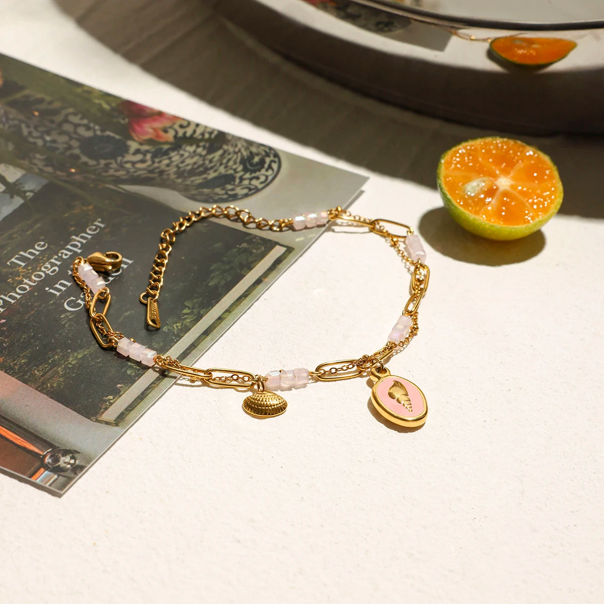 ステンレス304 低ニッケル 水に濡れても錆びにくい 18Kゴールドメッキ ブレスレット チャーム 【YJ01209】