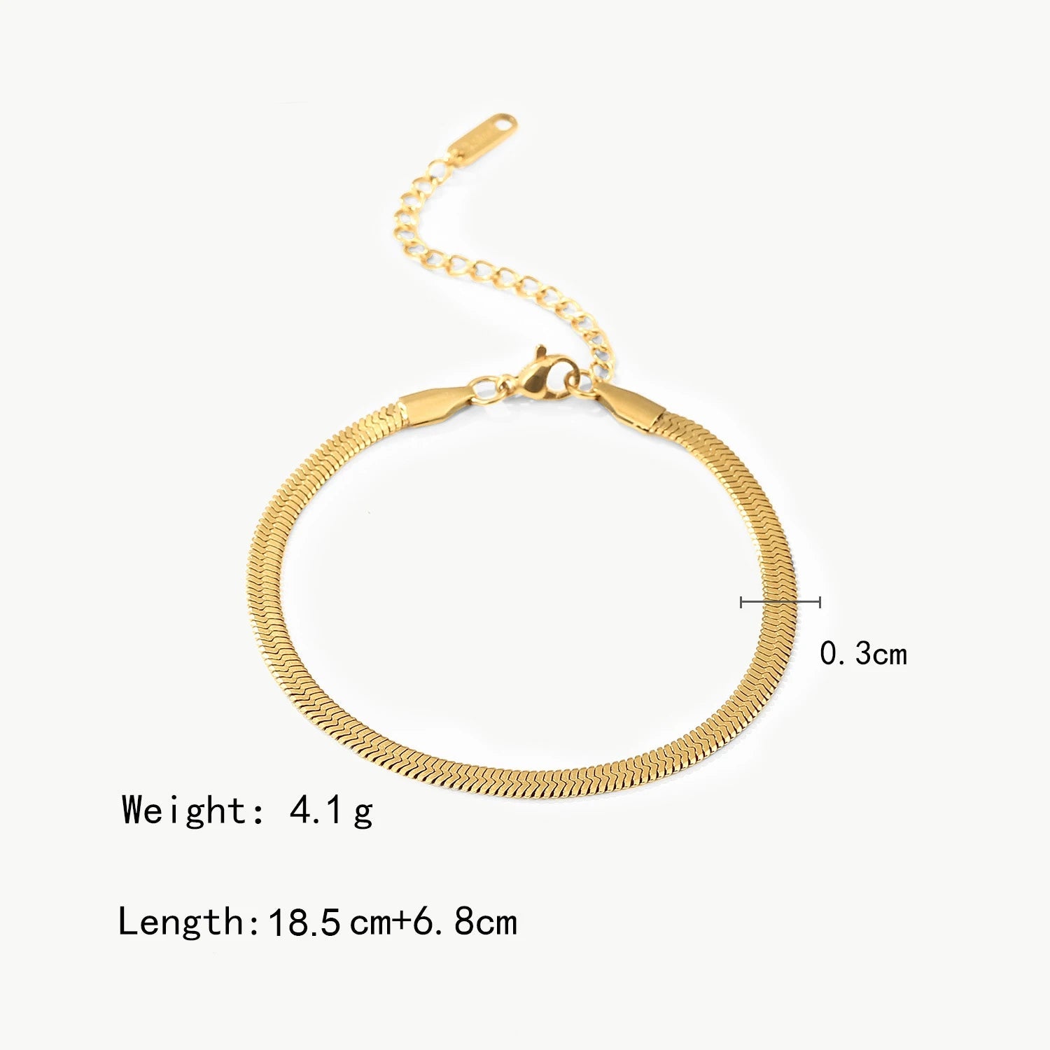 ステンレス304 低ニッケル 水に濡れても錆びにくい 18Kゴールドメッキ ブレスレット スネークチェーン【YJ01475】