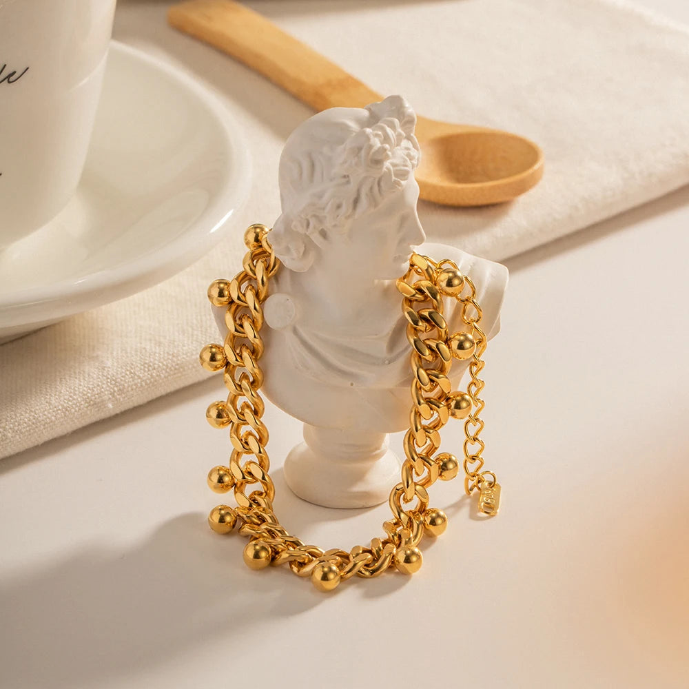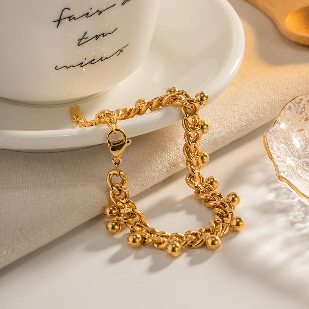 ステンレス304 低ニッケル 水に濡れても錆びにくい 18Kゴールドメッキ ブレスレット ボール【YJ01477】