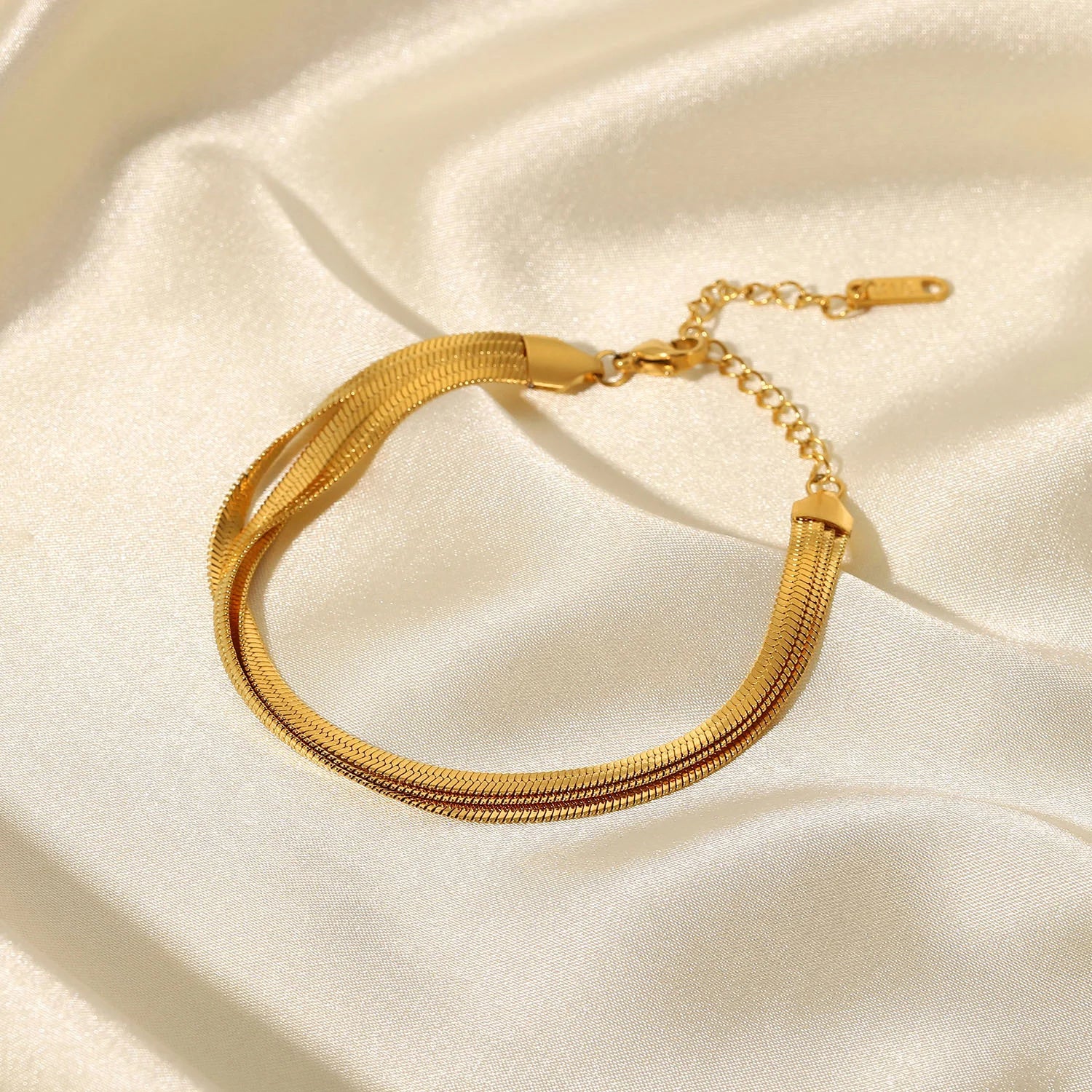 ステンレス304 低ニッケル 水に濡れても錆びにくい 18Kゴールドメッキ ブレスレット 3連 スネークチェーン 【YJ01478】