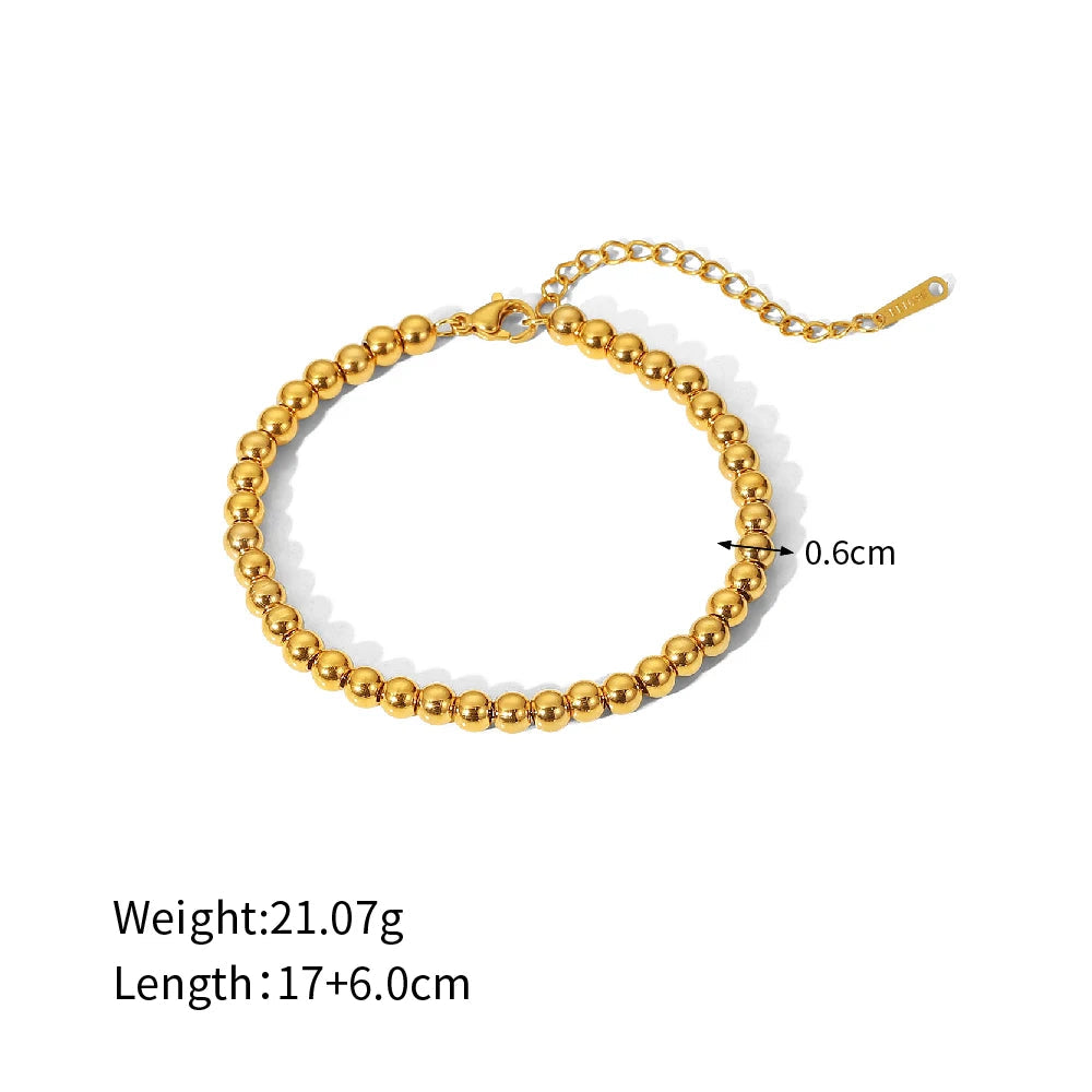 ステンレス304 低ニッケル 水に濡れても錆びにくい 18Kゴールドメッキ ブレスレット ボールチェーン 【YJ01480】