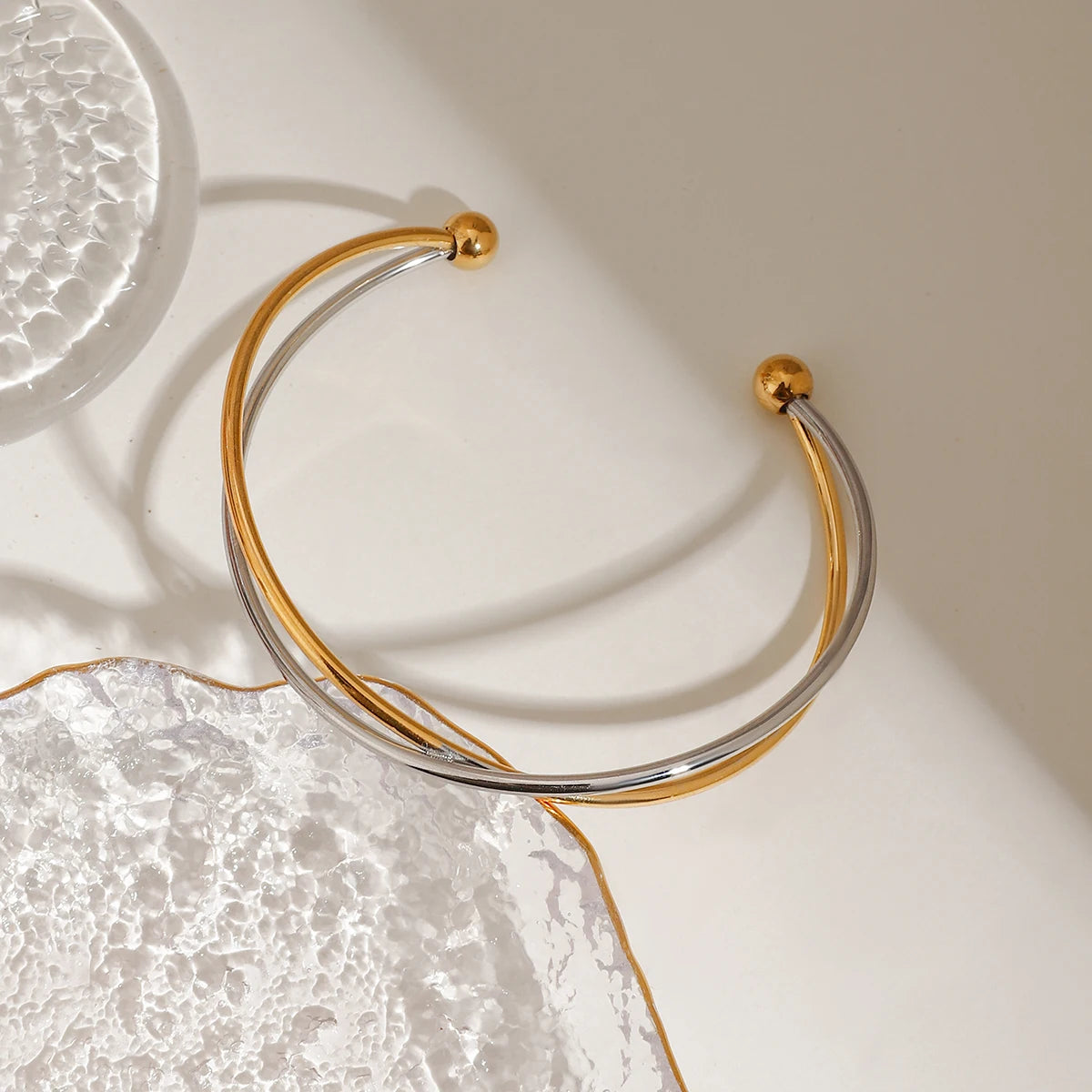 ステンレス304 低ニッケル 水に濡れても錆びにくい 18Kゴールドメッキ ブレスレット 【YJ01489】