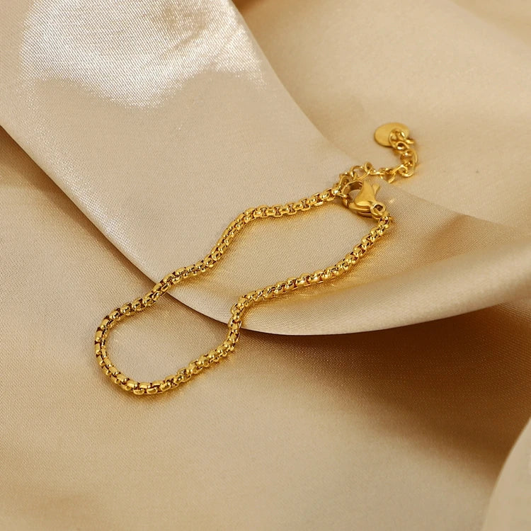 ステンレス304 低ニッケル 水に濡れても錆びにくい 18Kゴールドメッキ ブレスレット 【YJ01595】
