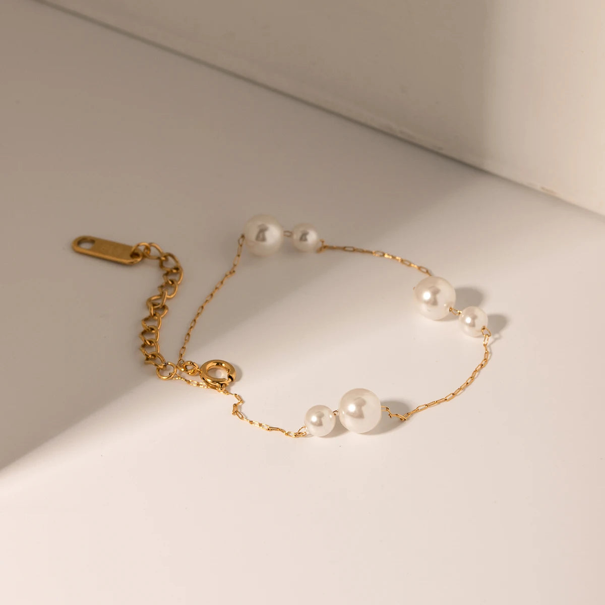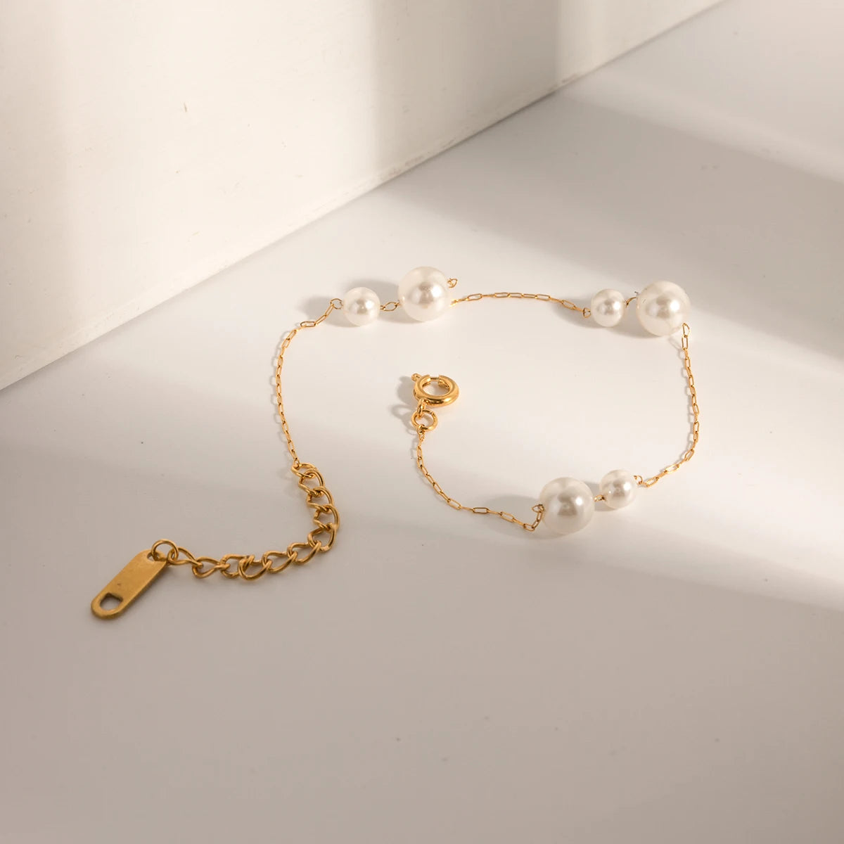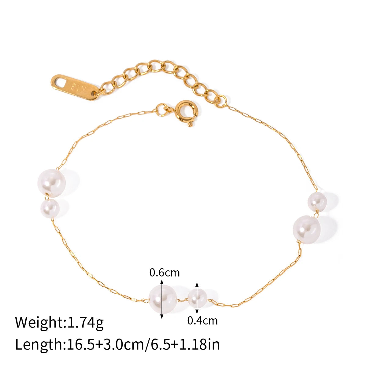 ステンレス304 低ニッケル 水に濡れても錆びにくい 18Kゴールドメッキ ブレスレット パール 【YJ01651】