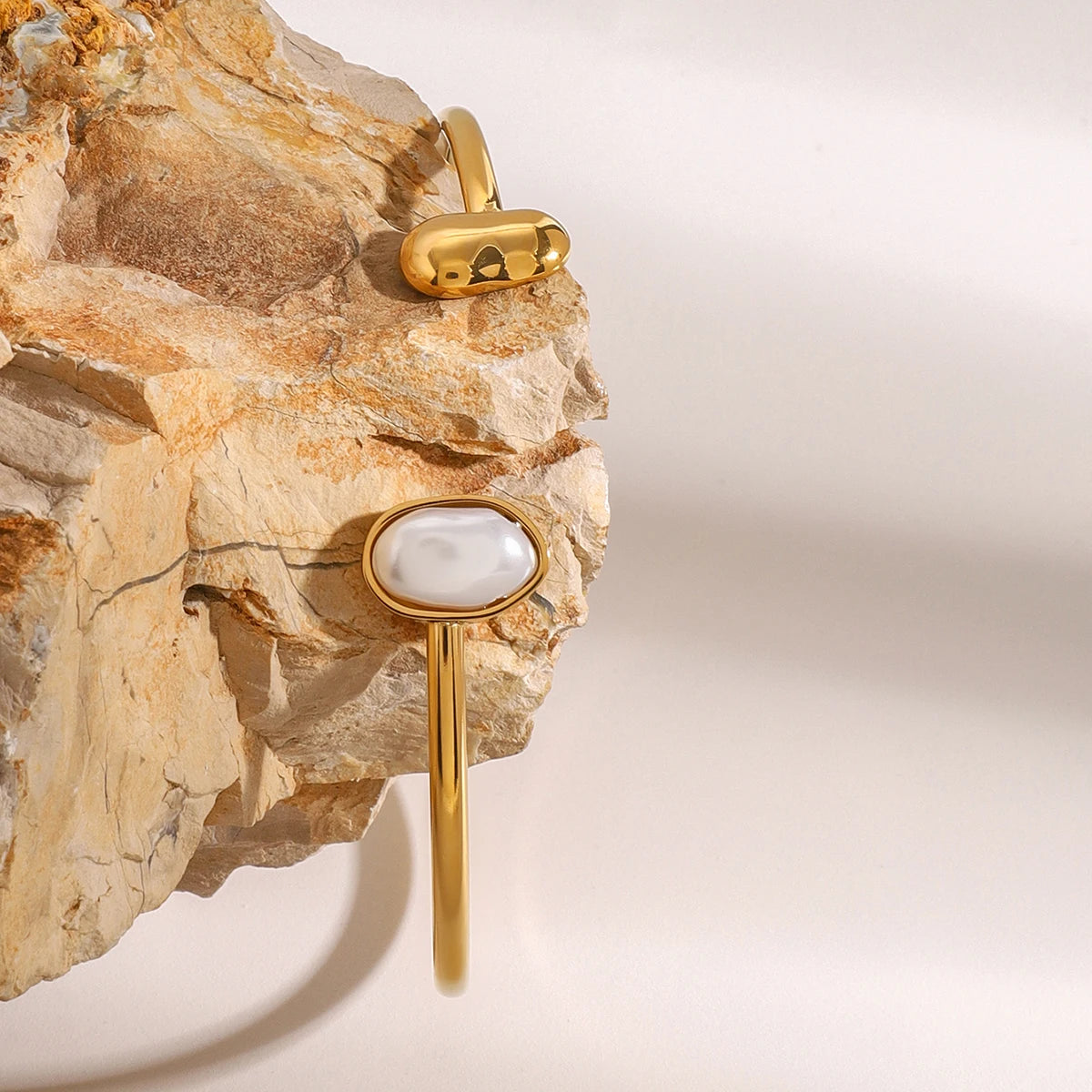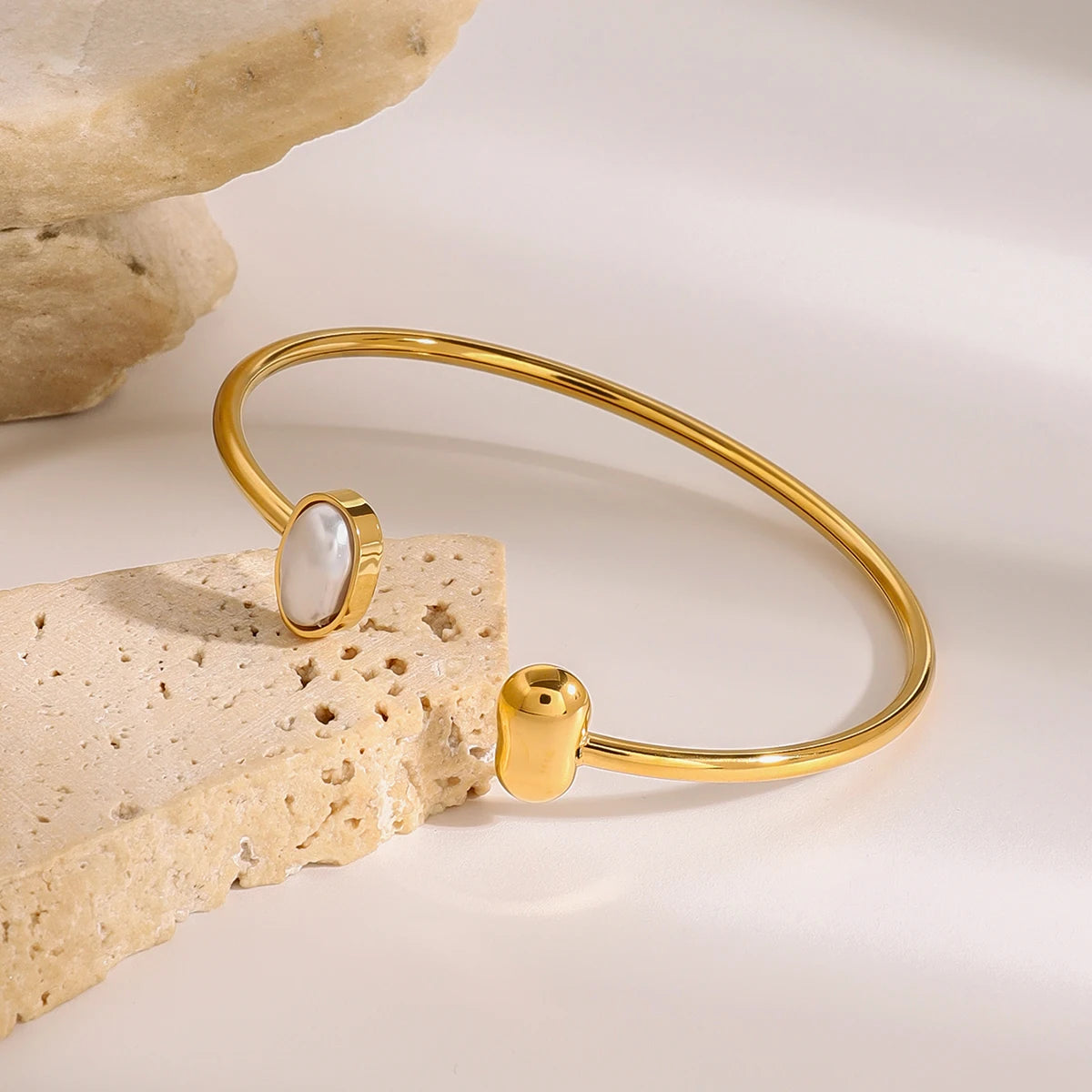ステンレス304 低ニッケル 水に濡れても錆びにくい 18Kゴールドメッキ ブレスレット パール 【YJ01985】