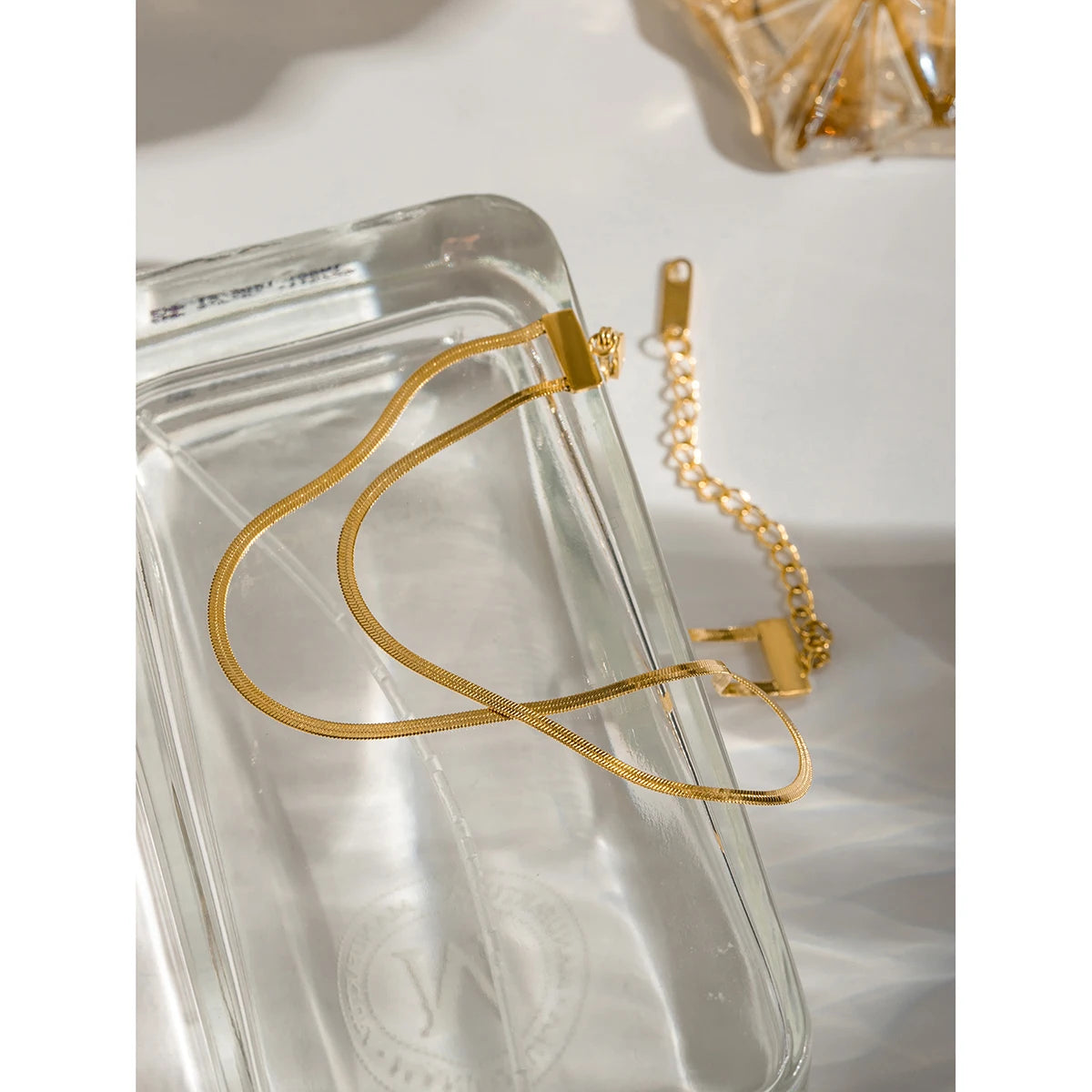 ステンレス304 低ニッケル 水に濡れても錆びにくい 18Kゴールドメッキ ブレスレット スネークチェーン 【YJ02146】