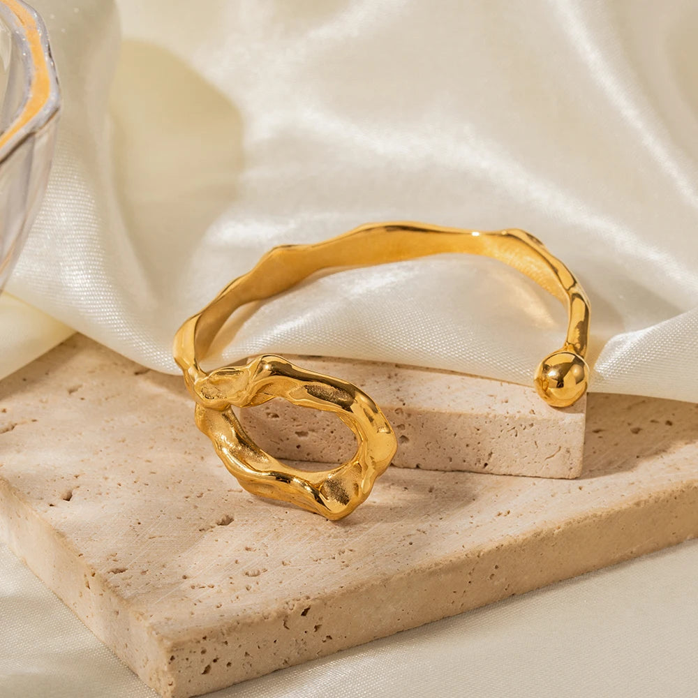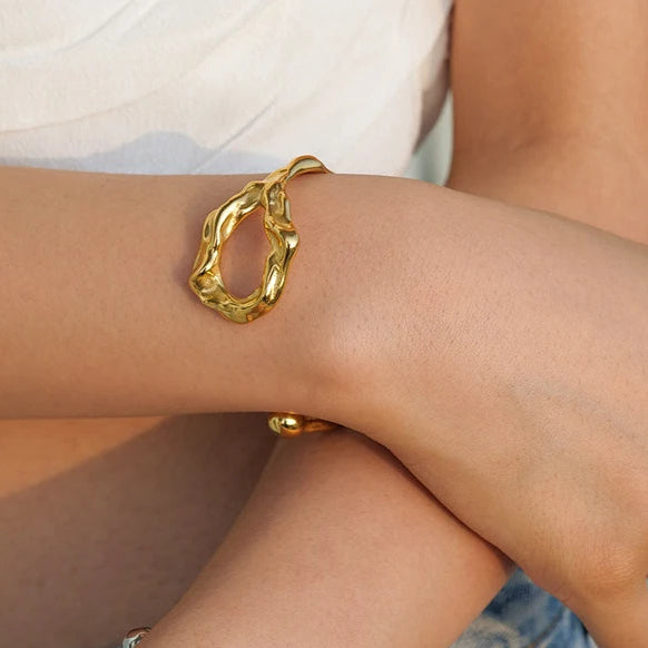 ステンレス304 低ニッケル 水に濡れても錆びにくい 18Kゴールドメッキ ブレスレット バングル 【YJ02328】