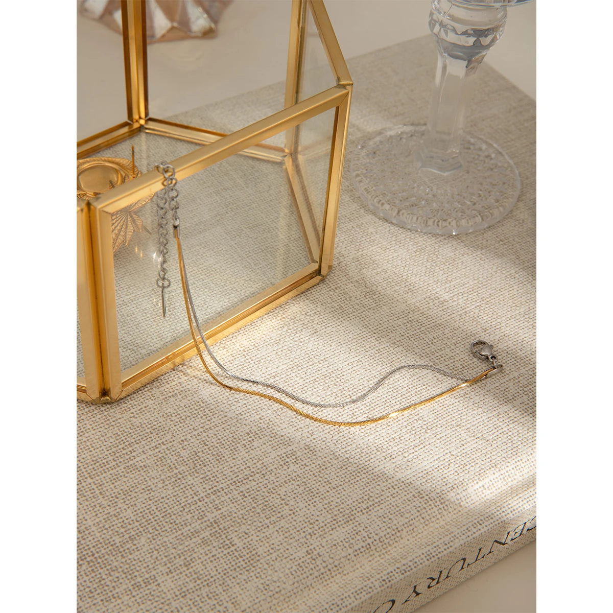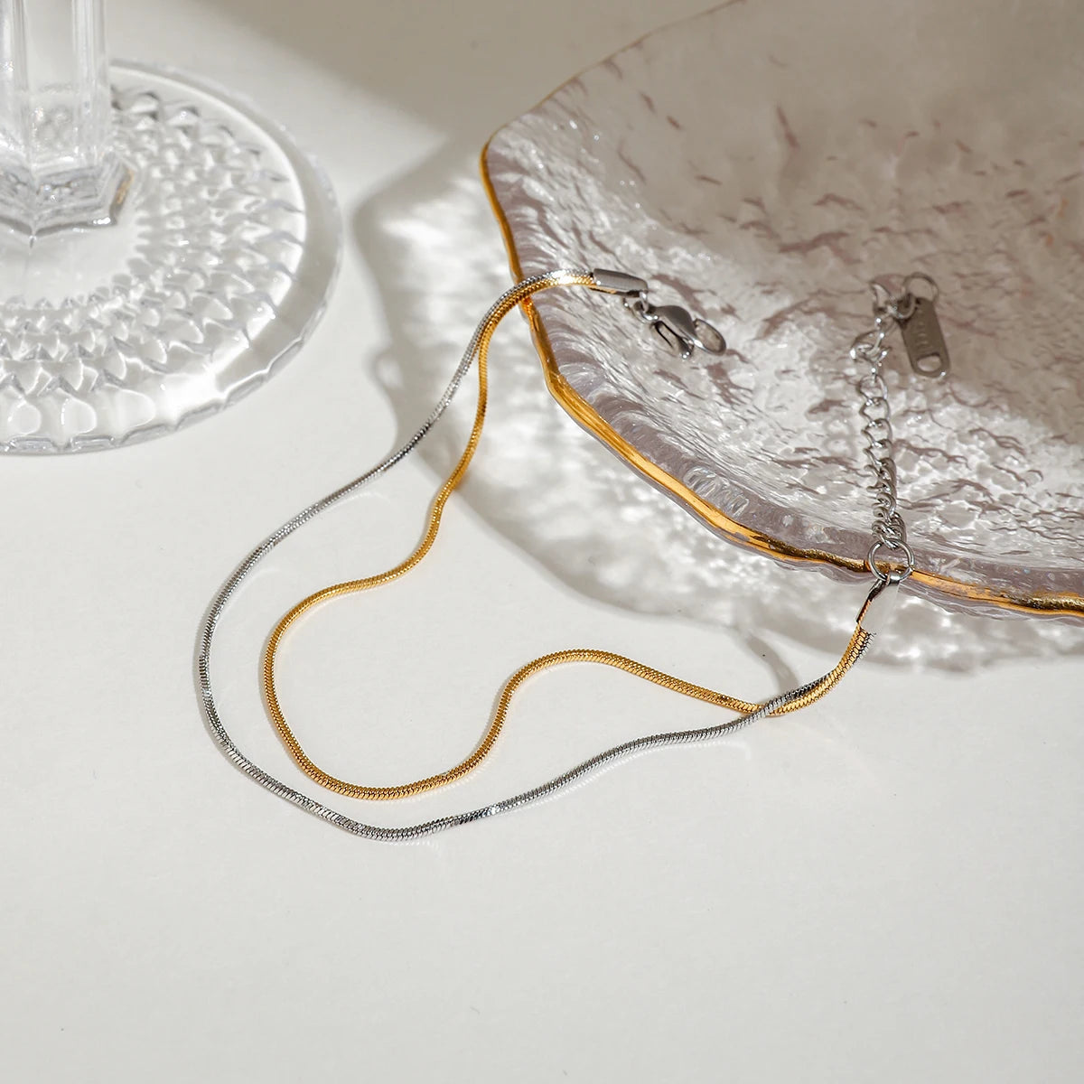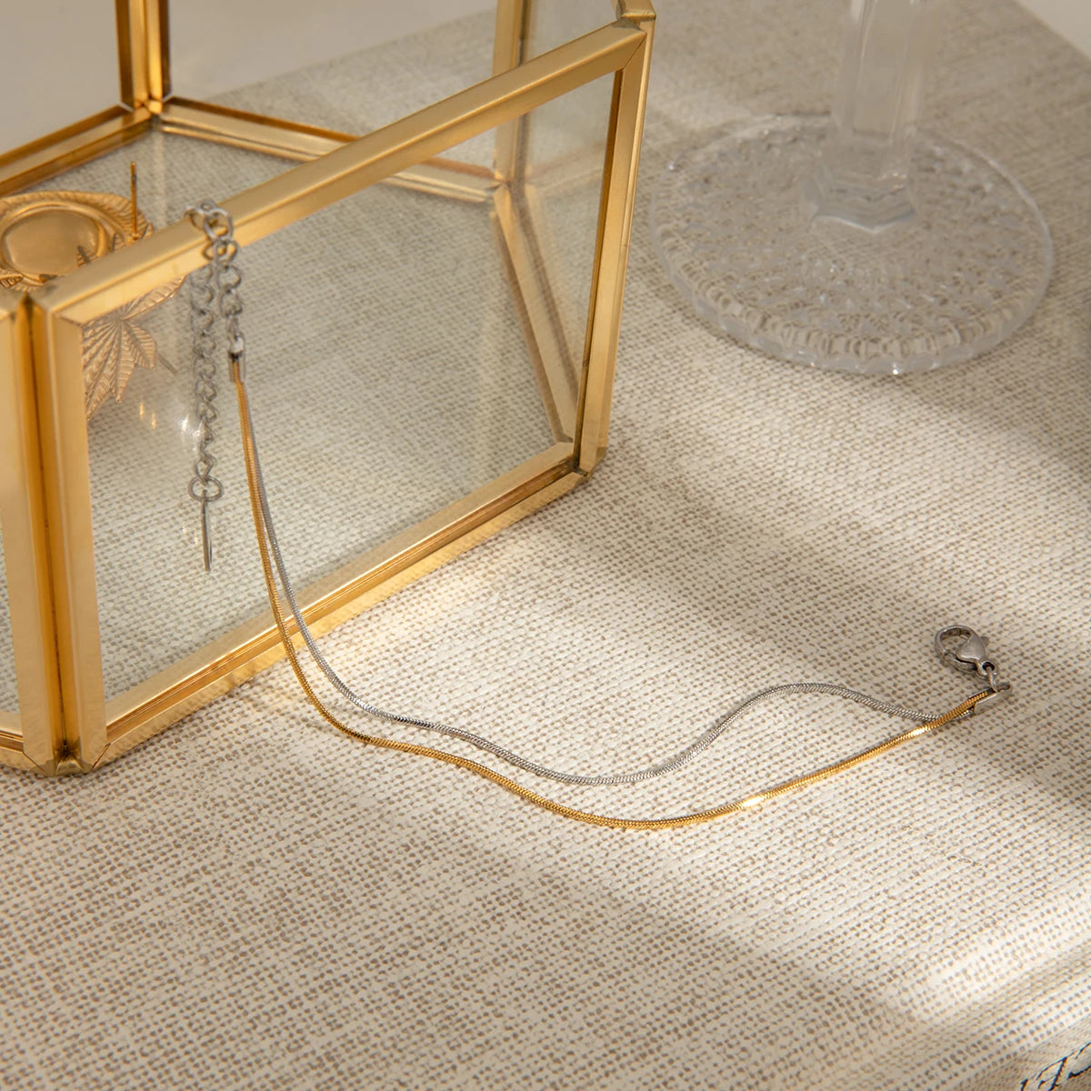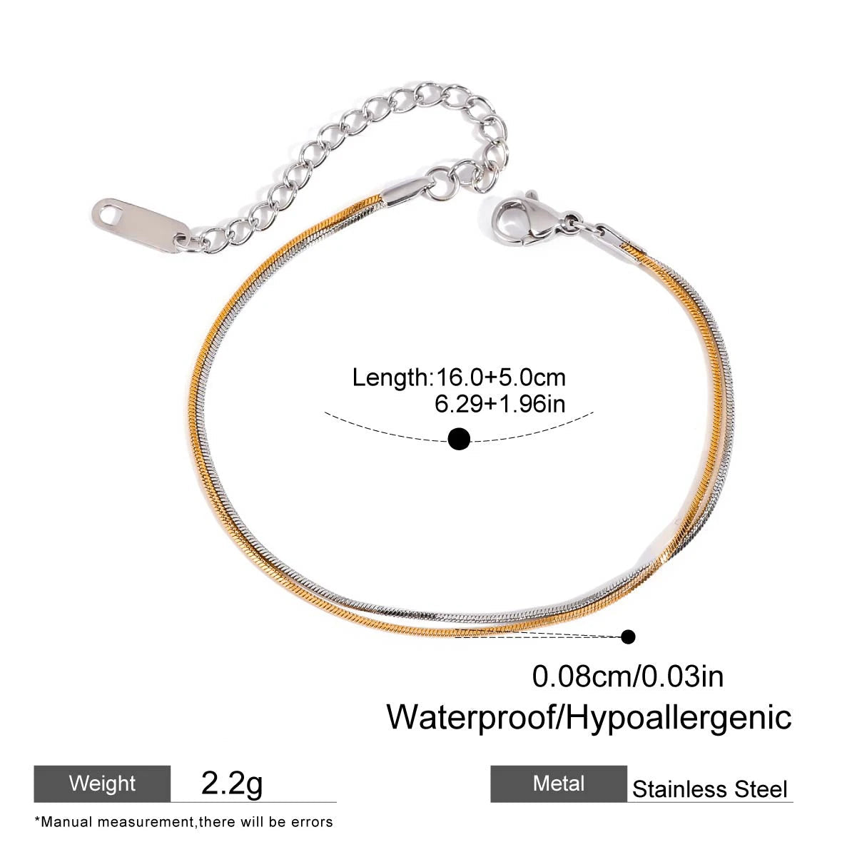ステンレス304 低ニッケル 水に濡れても錆びにくい 18Kゴールドメッキ ブレスレット 2連 チェーン 【YJ02549】