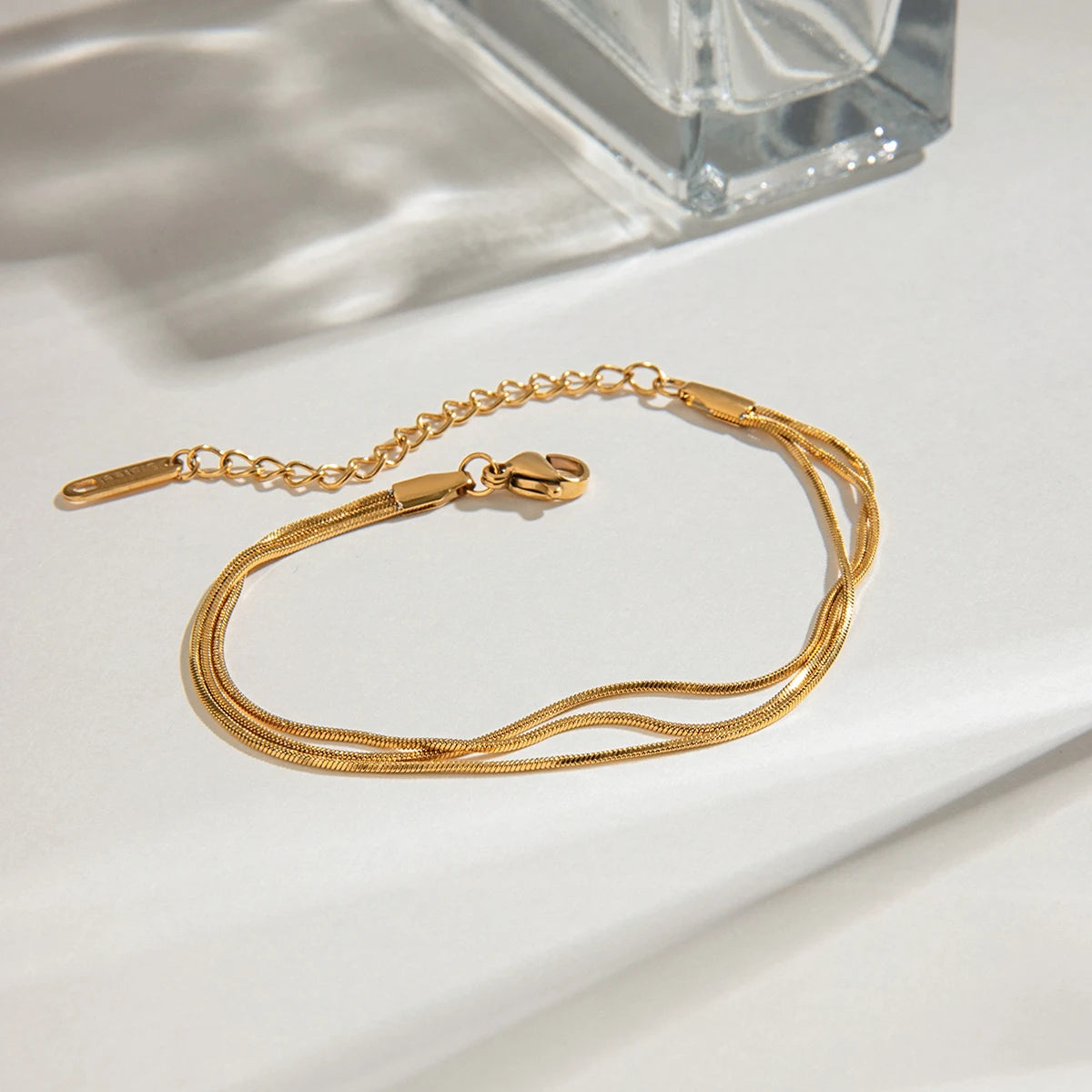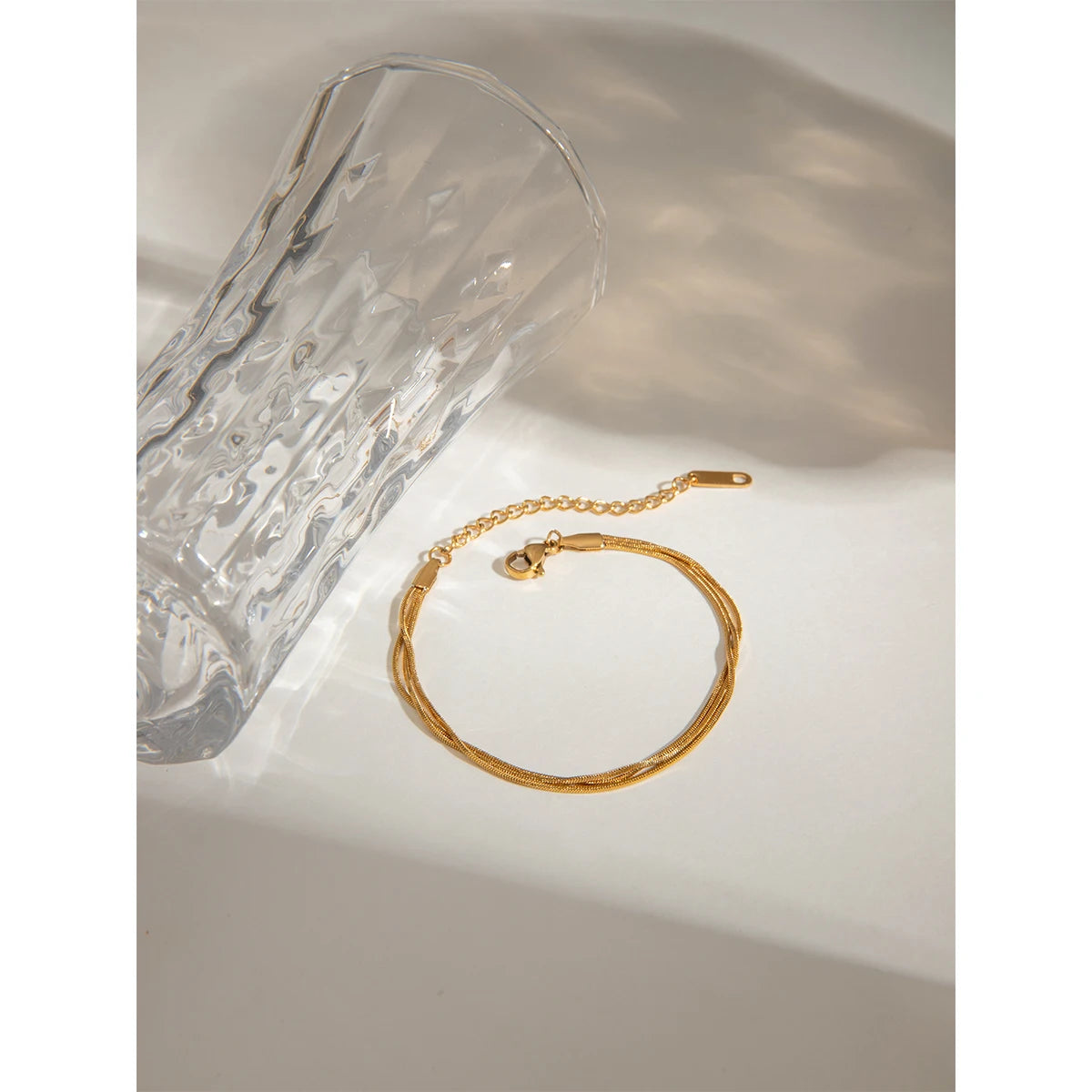 ステンレス304 低ニッケル 水に濡れても錆びにくい 18Kゴールドメッキ ブレスレット チェーン 3連 【YJ02550】