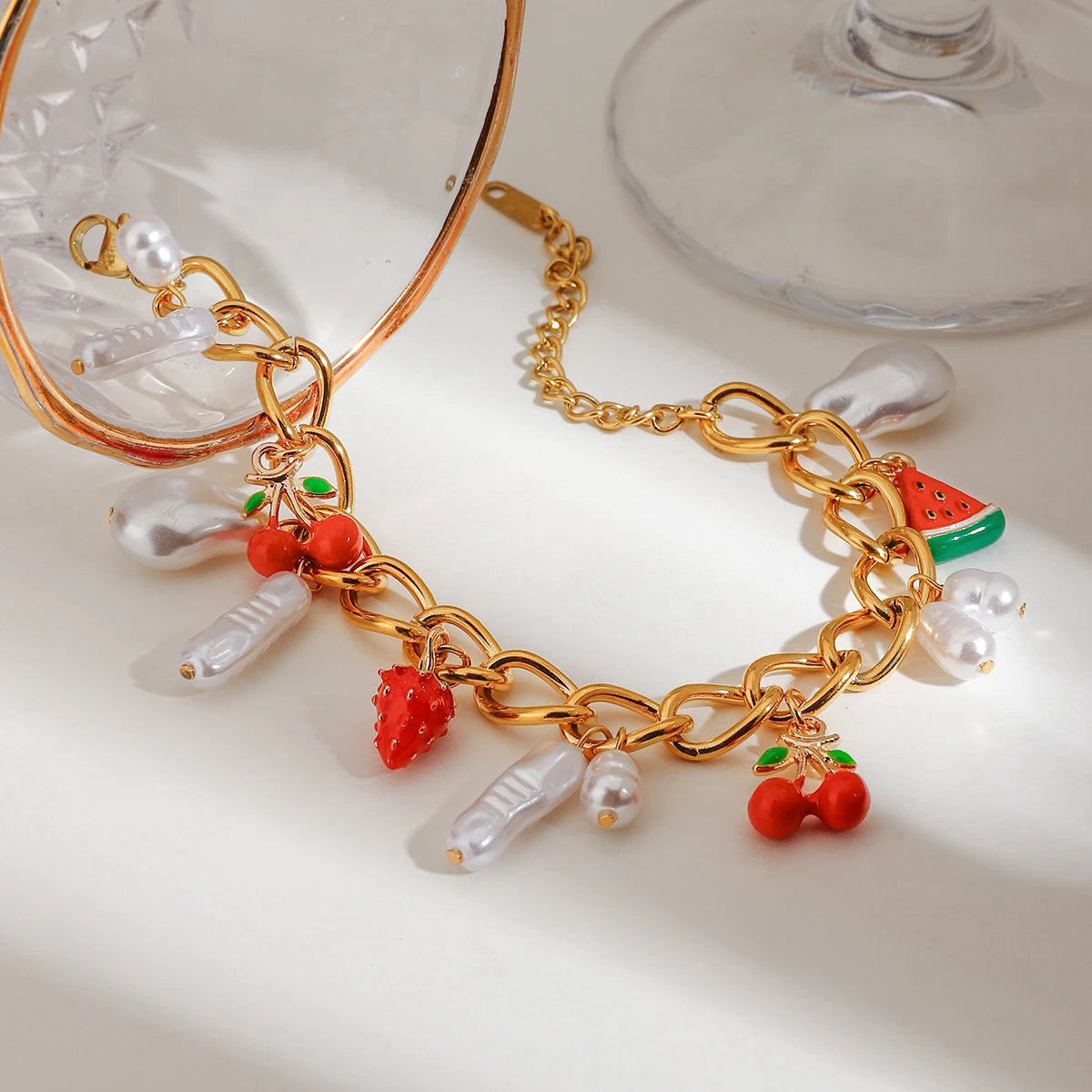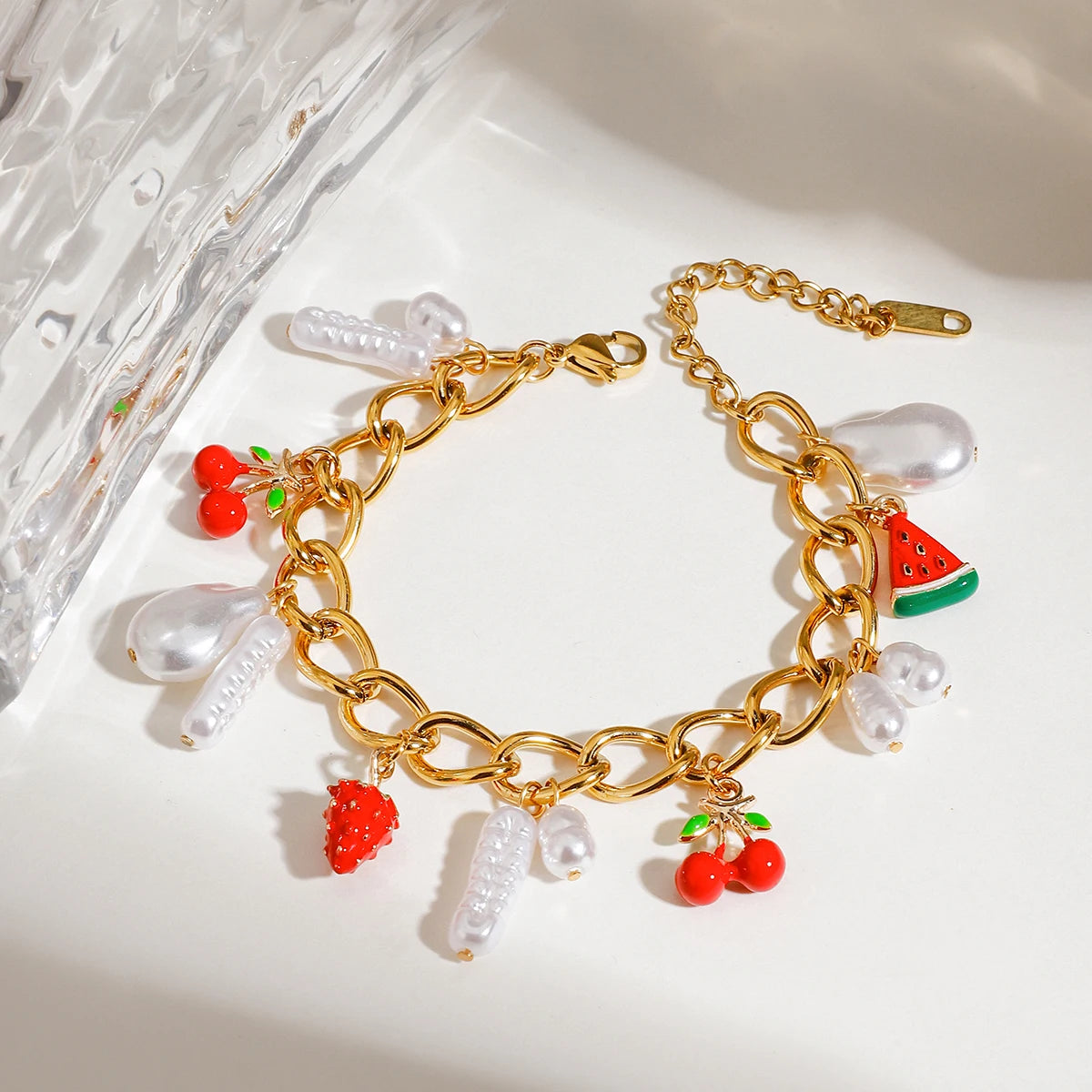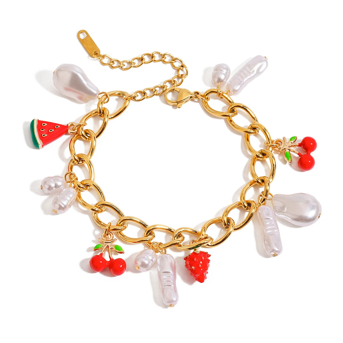 ステンレス304 低ニッケル 水に濡れても錆びにくい 18Kゴールドメッキ ブレスレット パール チャーム 【YJ02589】