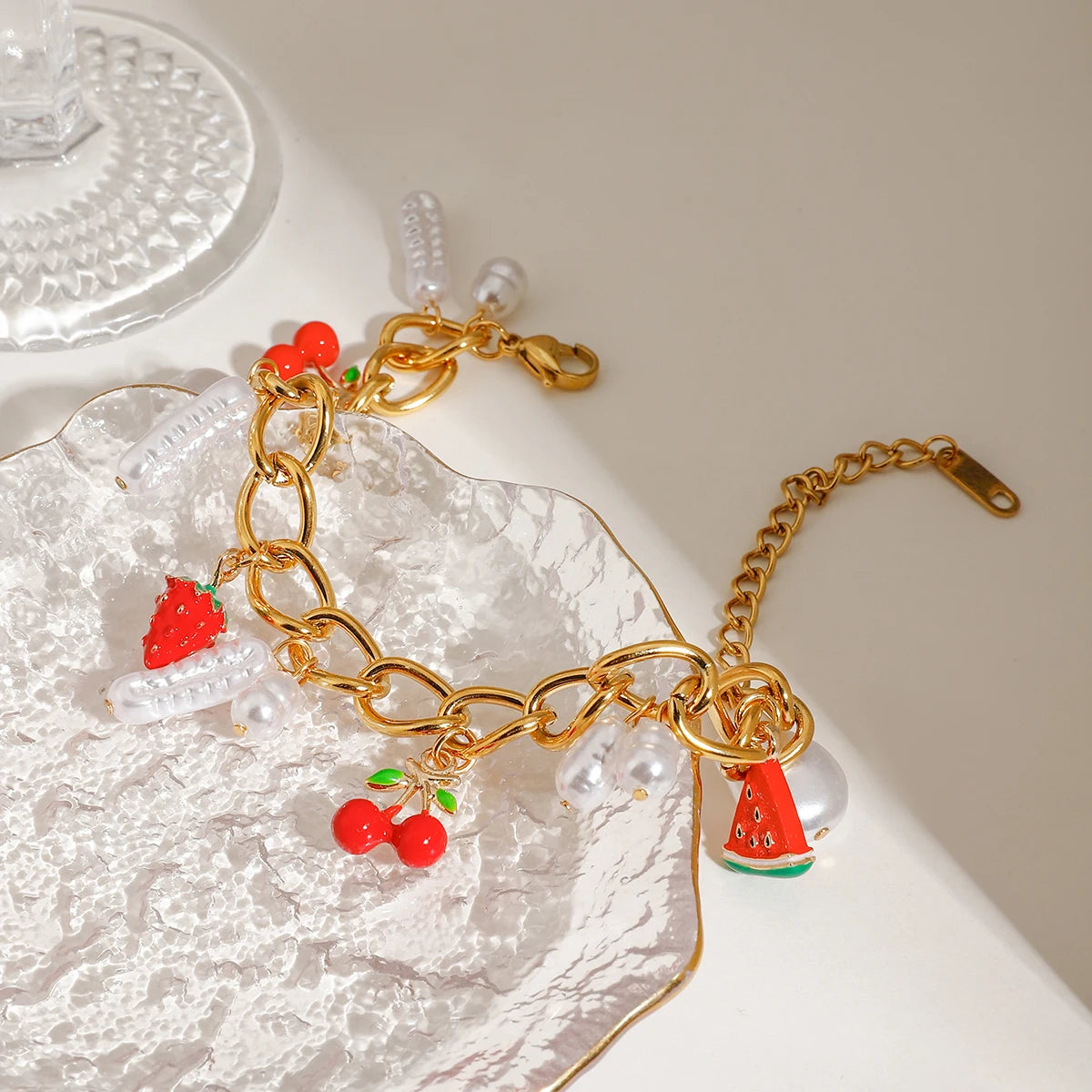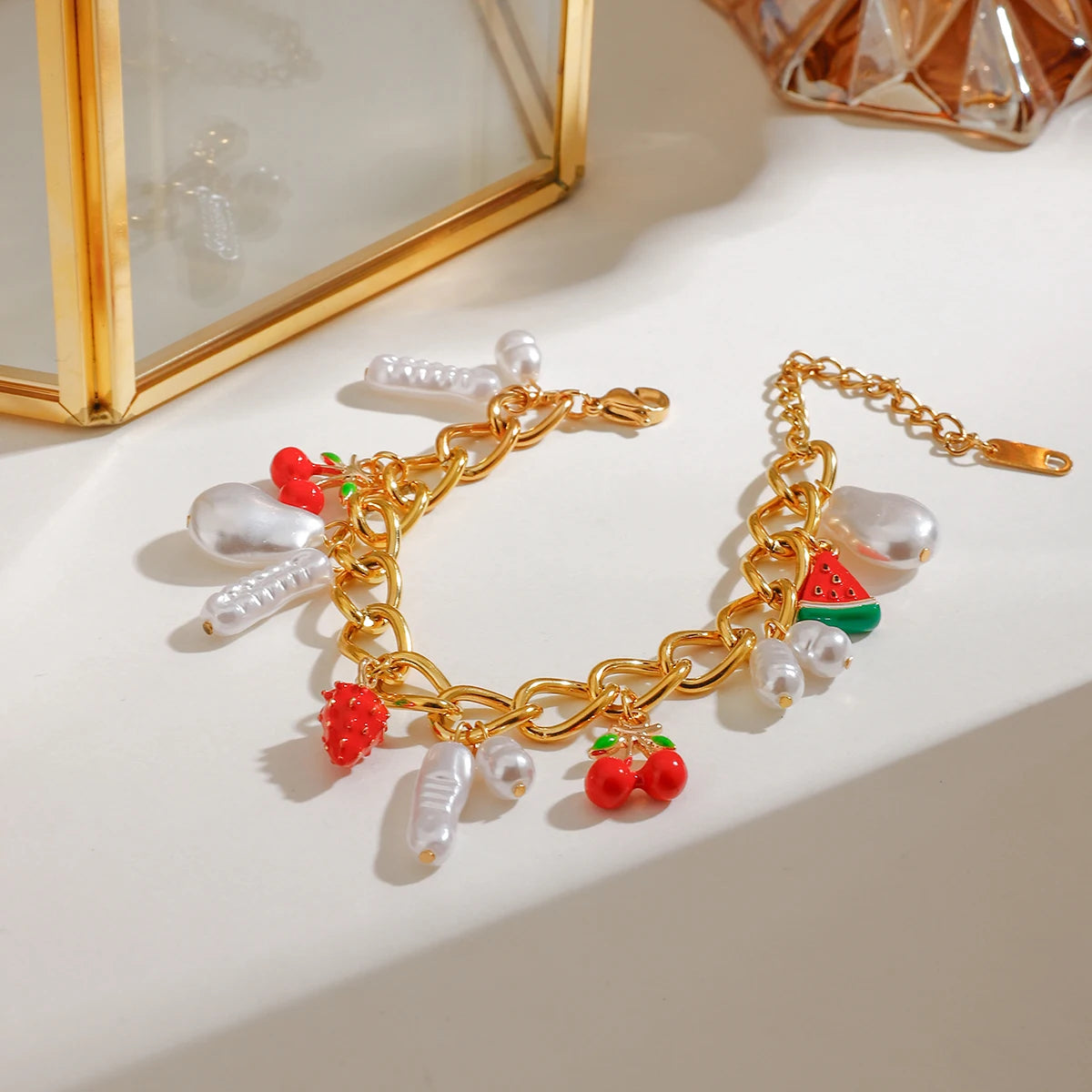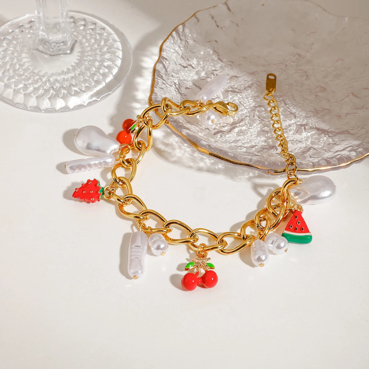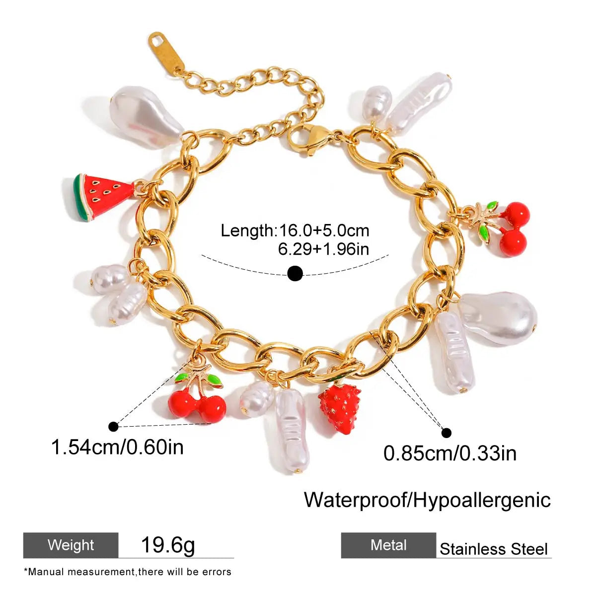 ステンレス304 低ニッケル 水に濡れても錆びにくい 18Kゴールドメッキ ブレスレット パール チャーム 【YJ02589】