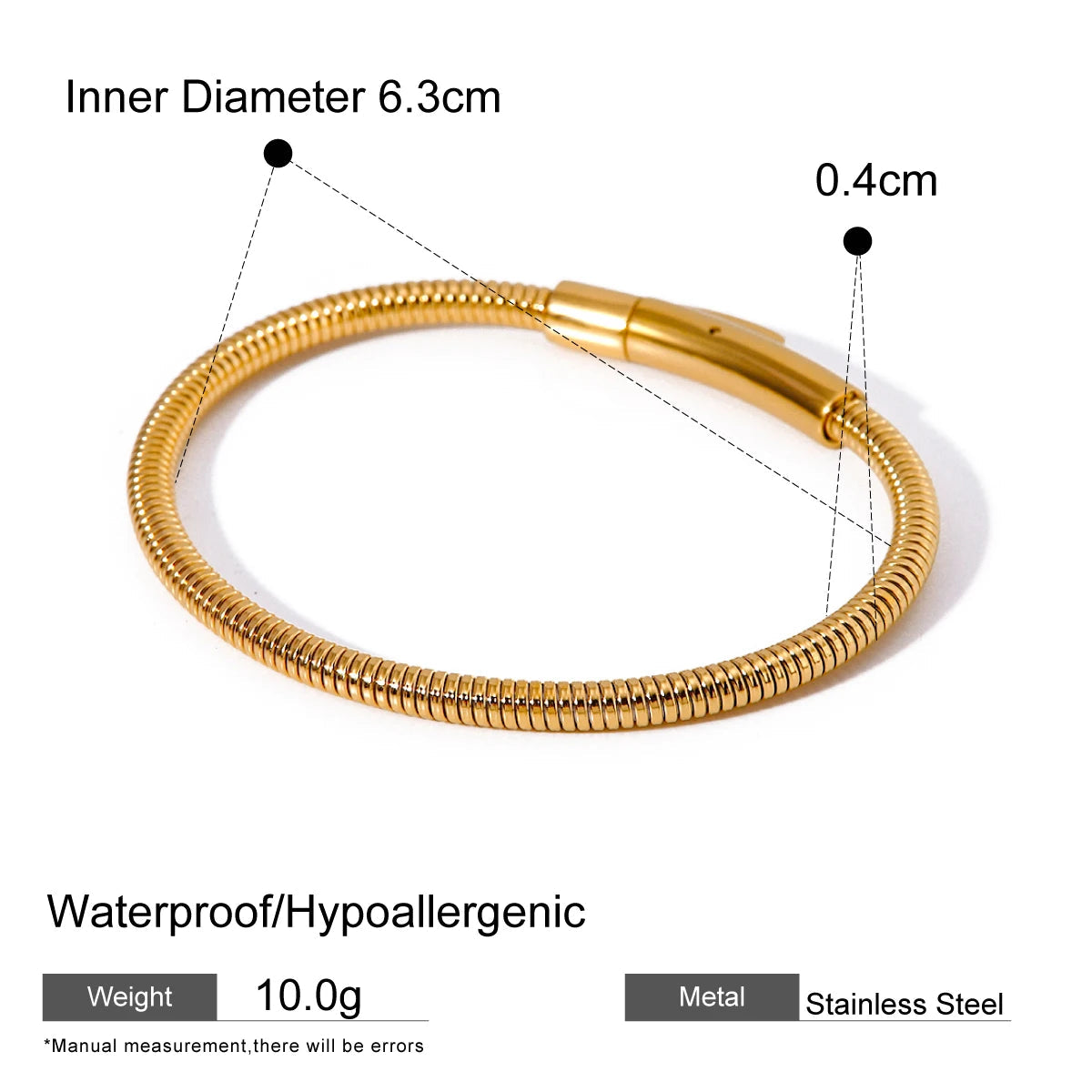 ステンレス304 低ニッケル 水に濡れても錆びにくい 18Kゴールドメッキ ブレスレット チェーン 【YJ02615】