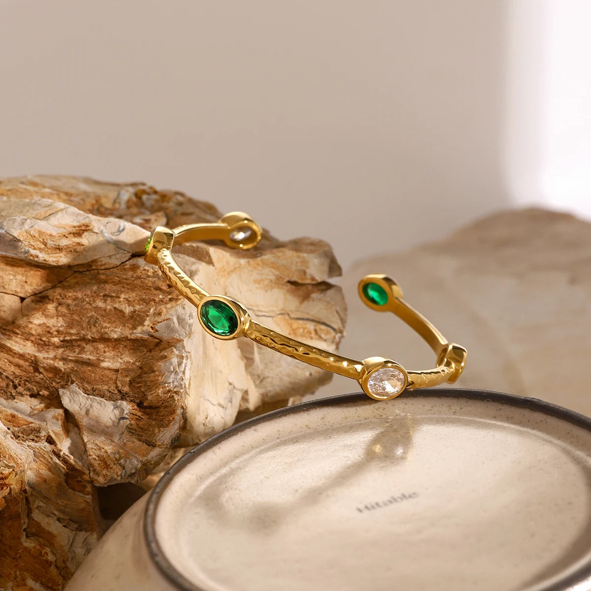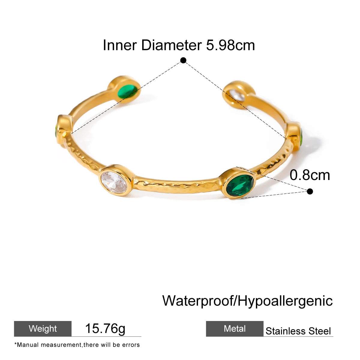 ステンレス304 低ニッケル 水に濡れても錆びにくい 18Kゴールドメッキ ブレスレット ジルコニア【YJ02638】