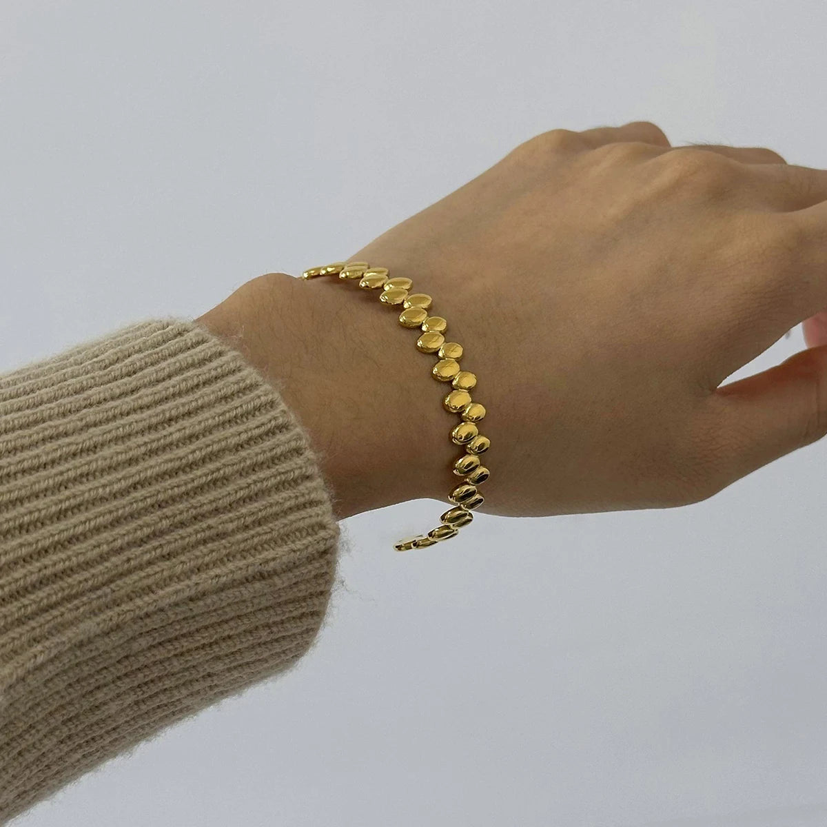 ステンレス304 低ニッケル 水に濡れても錆びにくい 18Kゴールドメッキ ブレスレット 【YJ03051】