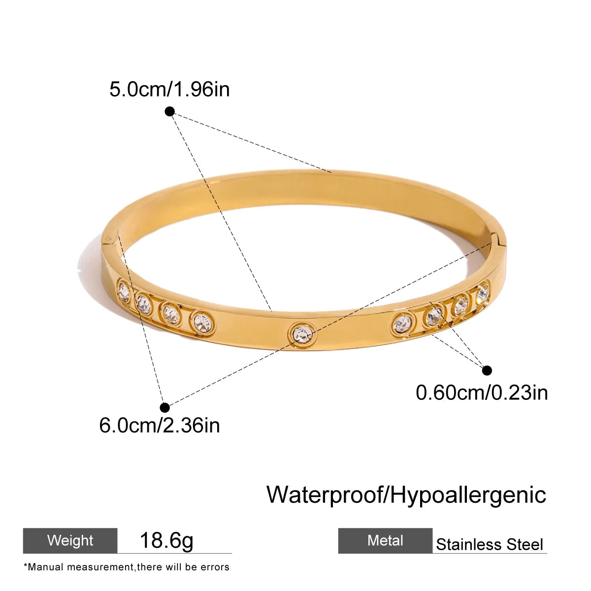 ステンレス304 低ニッケル 水に濡れても錆びにくい 18Kゴールドメッキ ブレスレット ジルコニア バングル【YJ03138】