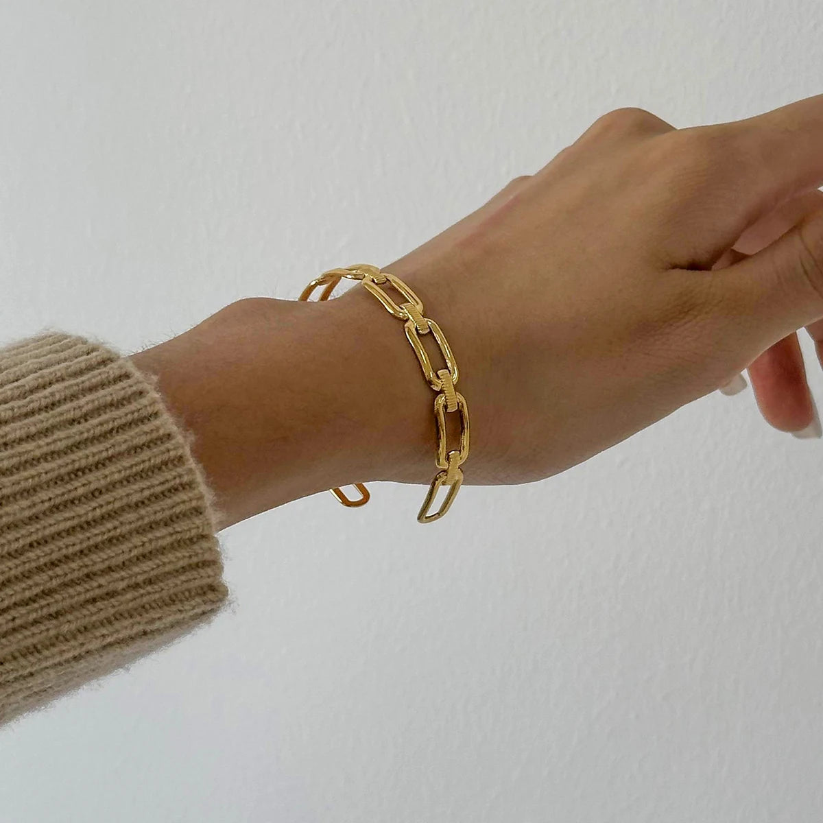 ステンレス304 低ニッケル 水に濡れても錆びにくい 18Kゴールドメッキ ブレスレット バングル【YJ03143】