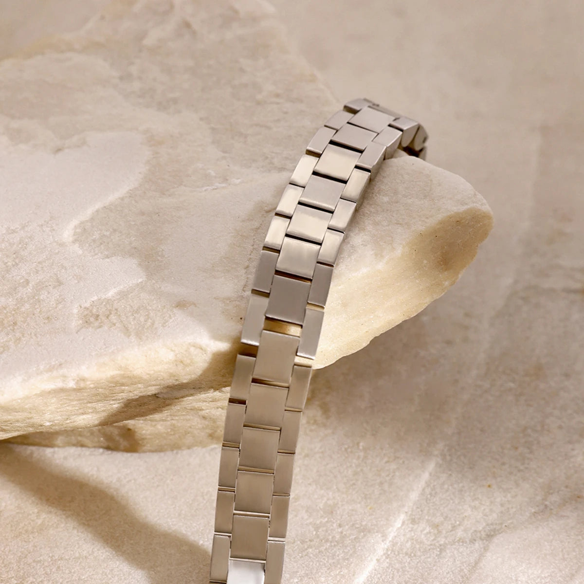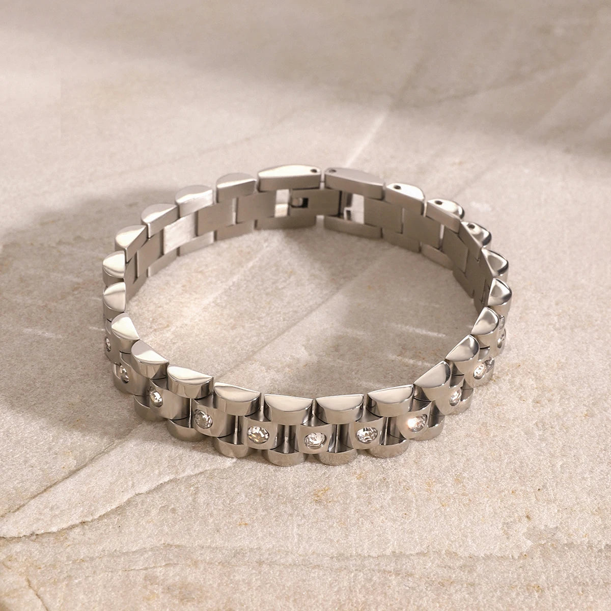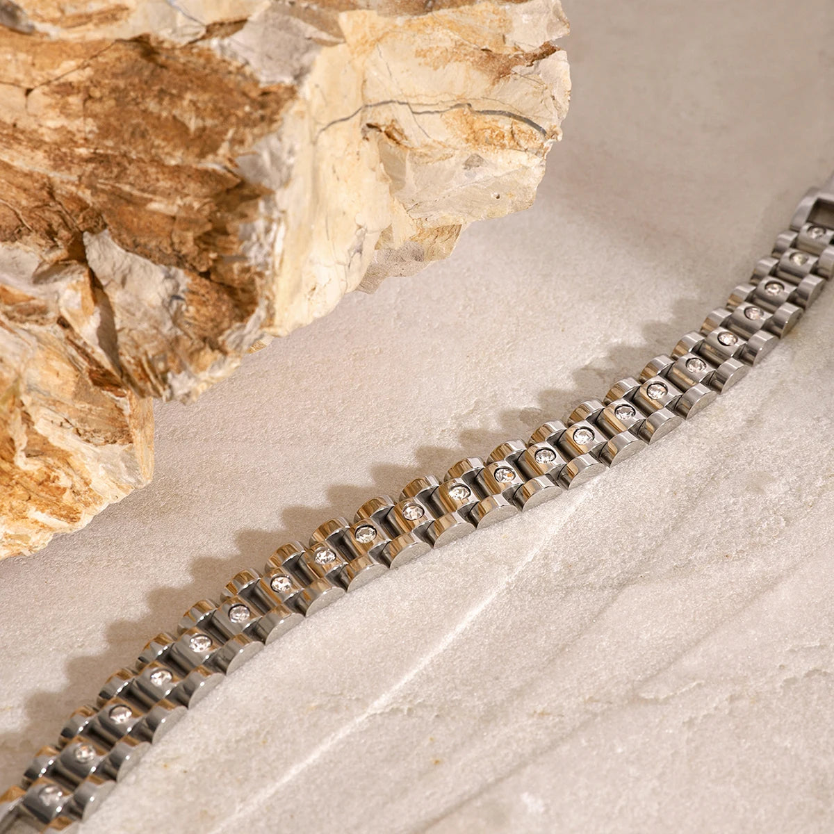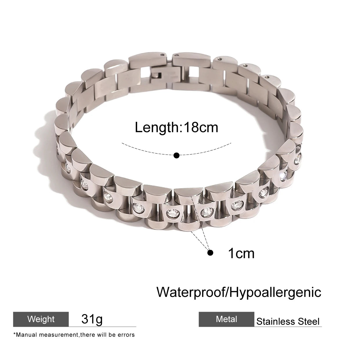 ステンレス304 低ニッケル 水に濡れても錆びにくい 18Kゴールドメッキ ブレスレット ジルコニア【YJ03305】