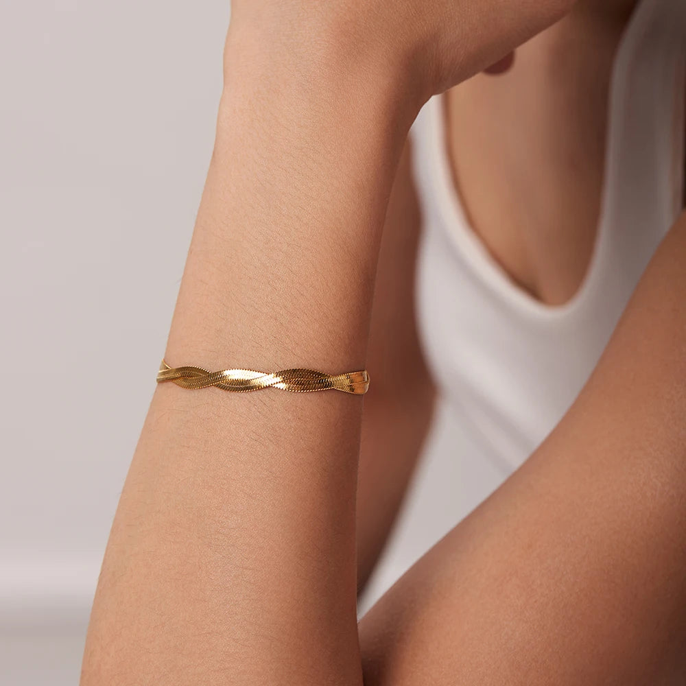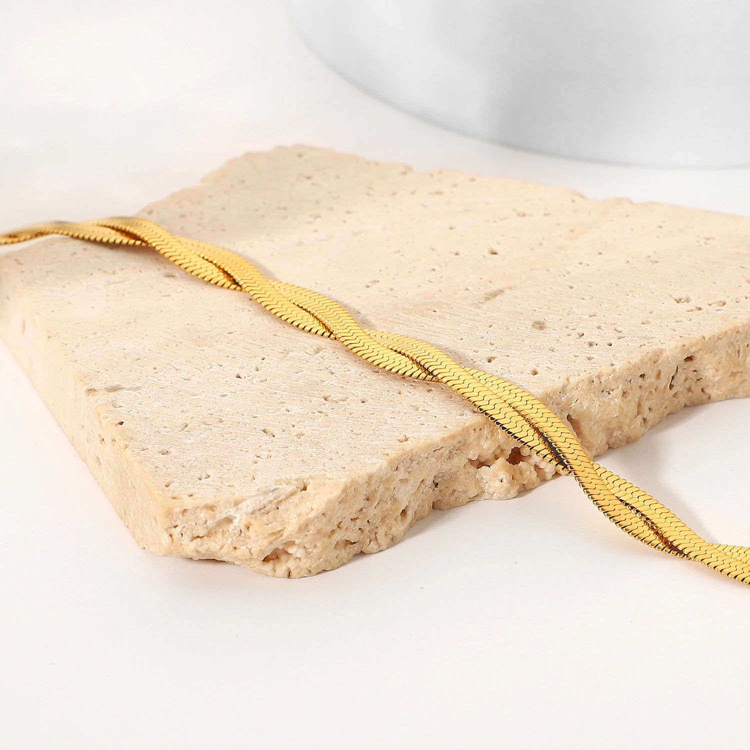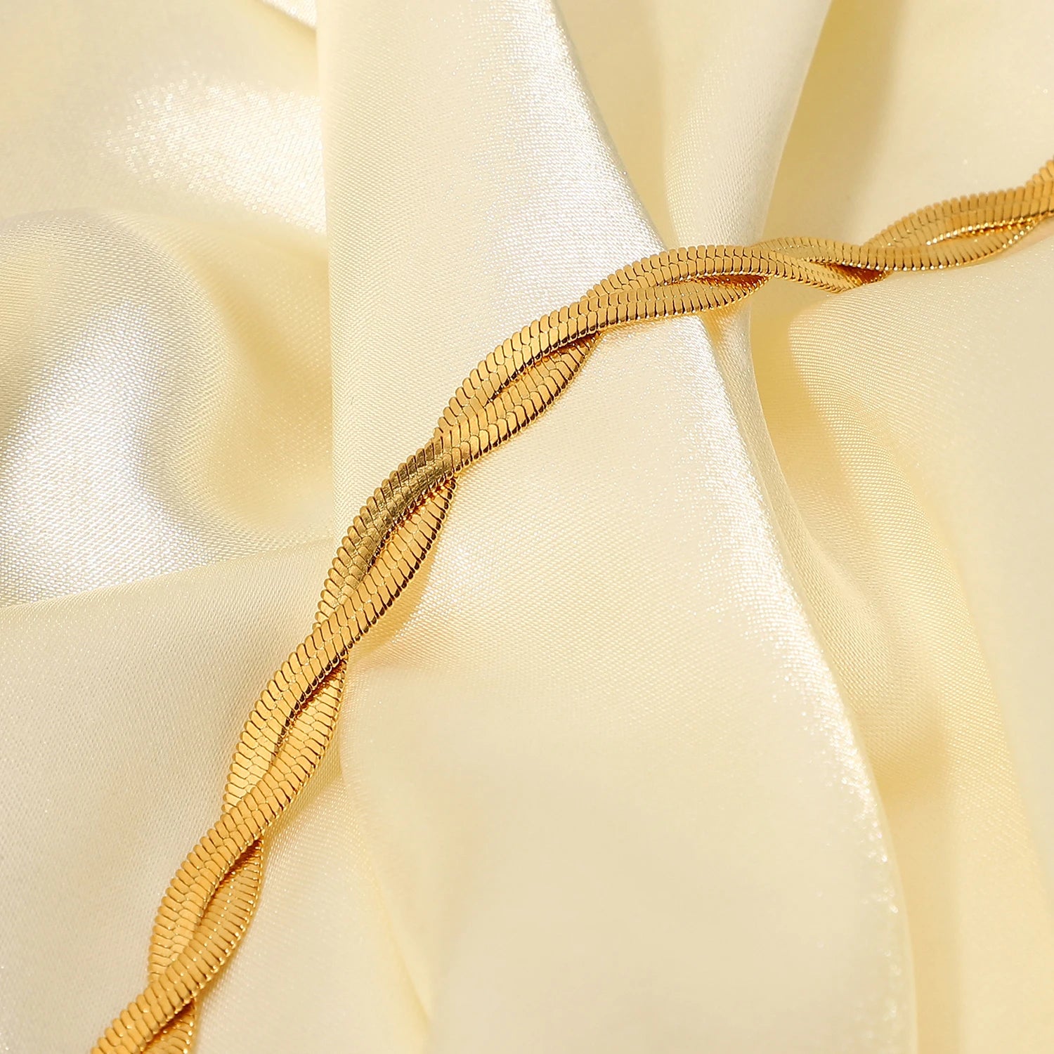 ステンレス304 低ニッケル 水に濡れても錆びにくい 18Kゴールドメッキ ブレスレット スネークチェーン【YJ03478】