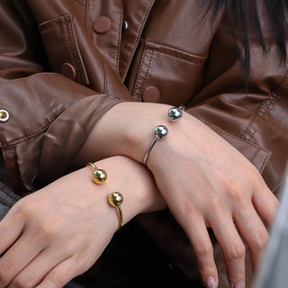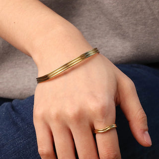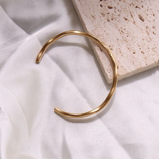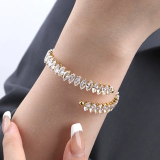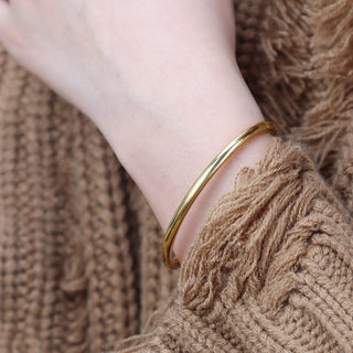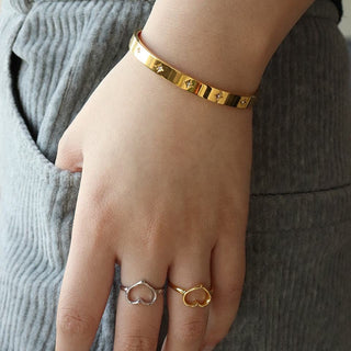 ステンレス304 低ニッケル 水に濡れても錆びにくい 18Kゴールドメッキ ブレスレット ジルコニア バングル【YJ03800】