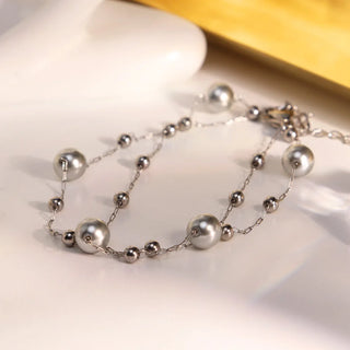 316Lサージカルステンレス ブレスレット チェーン 2連 パール 【NY00299】
