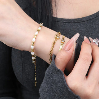 ステンレス304 低ニッケル 水に濡れても錆びにくい 18Kゴールドメッキ ブレスレット 【YJ03921】