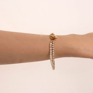 ステンレス304 低ニッケル 水に濡れても錆びにくい 18Kゴールドメッキ ブレスレット ジルコニア 【YJ04026】