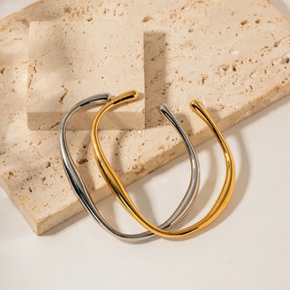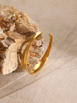 ステンレス304 低ニッケル 水に濡れても錆びにくい 18Kゴールドメッキ ブレスレット バングル ウェーブ【YJ03206】