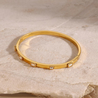 ステンレス304 低ニッケル 水に濡れても錆びにくい 18Kゴールドメッキ ブレスレット ジルコニア バングル【YJ03138】