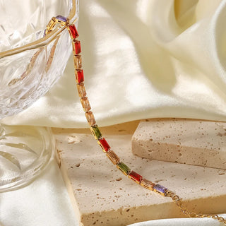 ステンレス304 低ニッケル 水に濡れても錆びにくい 18Kゴールドメッキ ブレスレット クリスタル ジルコニア 【YJ03797】