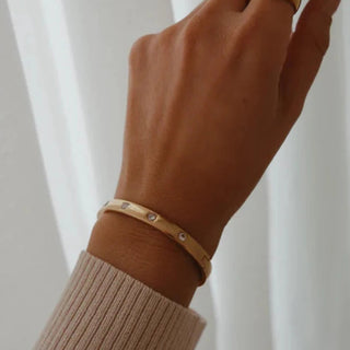 ステンレス304 低ニッケル 水に濡れても錆びにくい 18Kゴールドメッキ ブレスレット ジルコニア 【YJ03479】