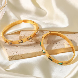 ステンレス304 低ニッケル 水に濡れても錆びにくい 18Kゴールドメッキ ブレスレット チェーン スクエア ジルコニア 【YJ03500】