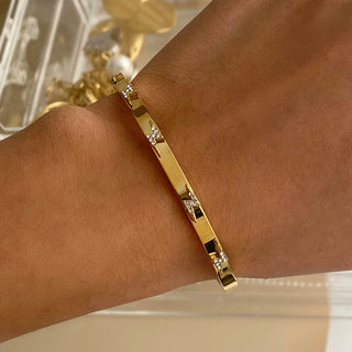 ステンレス304 低ニッケル 水に濡れても錆びにくい 18Kゴールドメッキ ブレスレット ジルコニア 【YJ03623】